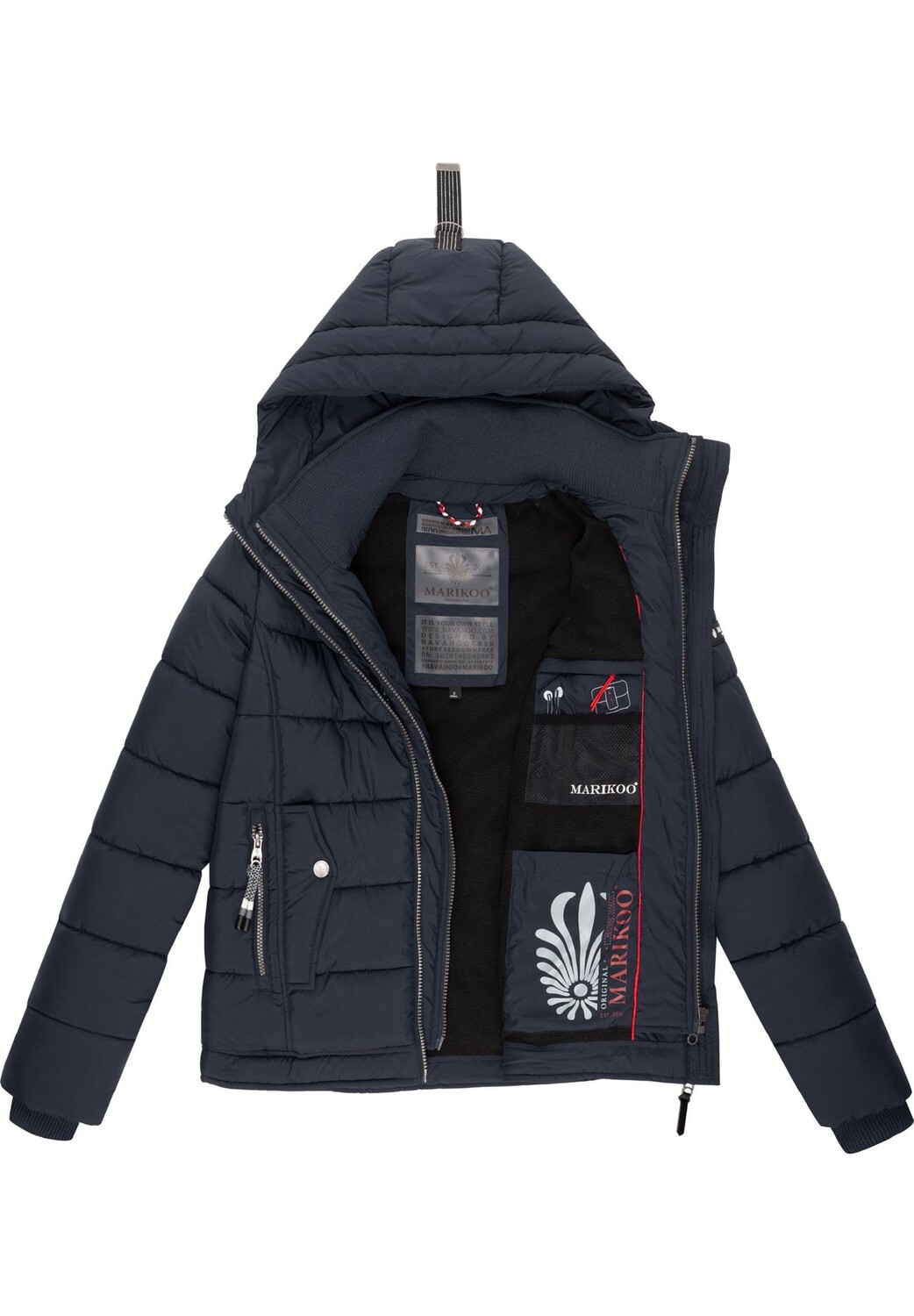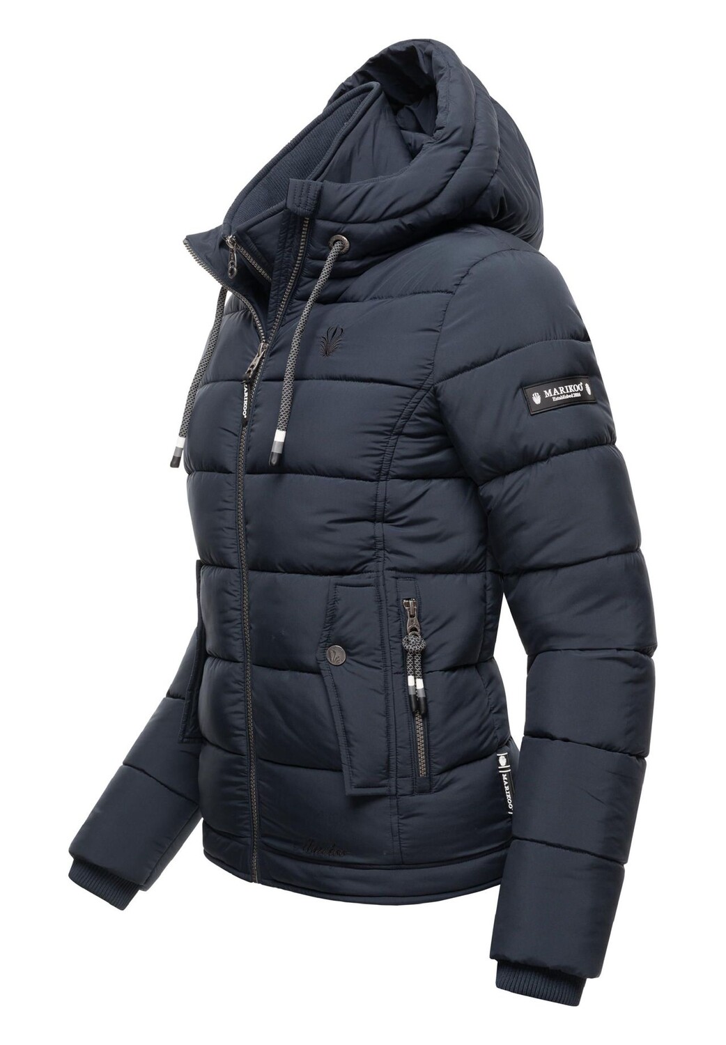 Описание товара: ВИД: Модная женская стеганая куртка с двойной молнией спереди и большим капюшоном (с пряжкой) от Marikoo - идеально подходит для активного отдыха. МАТЕРИАЛ: Зимняя куртка из супермягкого водоотталкивающего наружного материала, Уютный флис внутри и трикотажные манжеты на воротнике и манжетах в рубчик всегда сохраняют тепло и комфорт. ФОРМА: верхняя куртка имеет прямой крой и закрывает бедра, манжеты на туловище регулируются с помощью внутренней резинки (ветровая застежка) и ширину капюшона также можно индивидуально регулировать с помощью светоотражающего шнура. ДЕТАЛИ: внешняя молния высокая и имеет защиту подбородка, многочисленные внешние и внутренние карманы гарантируют достаточно места для хранения ценных вещей (кошелька, мобильного телефона, наушников, аккумулятора и т. д.). .
