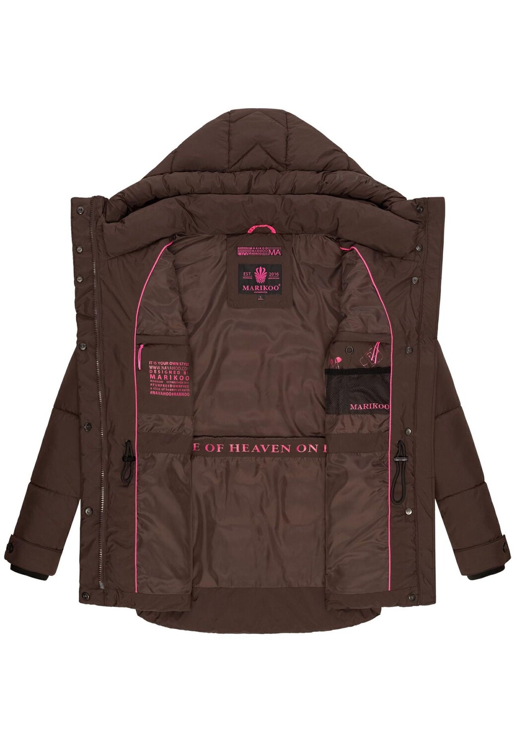 Описание товара: СМОТР: Теплая, подчеркивающая фигуру зимняя куртка от Marikoo с модными контрастными деталями – настоящий фаворит для холодных осенних и зимних дней! МАТЕРИАЛ: Куртка средней толщины на подкладке из матового мерцающего внешнего материала (водо- и ветроотталкивающего), благодаря высококачественной набивке куртка одновременно очень легкая и очень теплая, что делает ее удобной в ношении. ПОДХОД: Женский. стеганая куртка фигурного, слегка приталенного кроя, который можно регулировать с помощью внутренних завязок на талии, куртка имеет большую длину до низа и немного длиннее сзади, чем спереди. ДЕТАЛИ: Высокий воротник обеспечивает идеальную защита от ветра лучше, чем любой шарф, широкие внешние карманы на подкладке. Регулируемый капюшон, регулируемые края рукавов и эластичные ребристые манжеты на концах рукавов сохраняют тепло и комфорт.