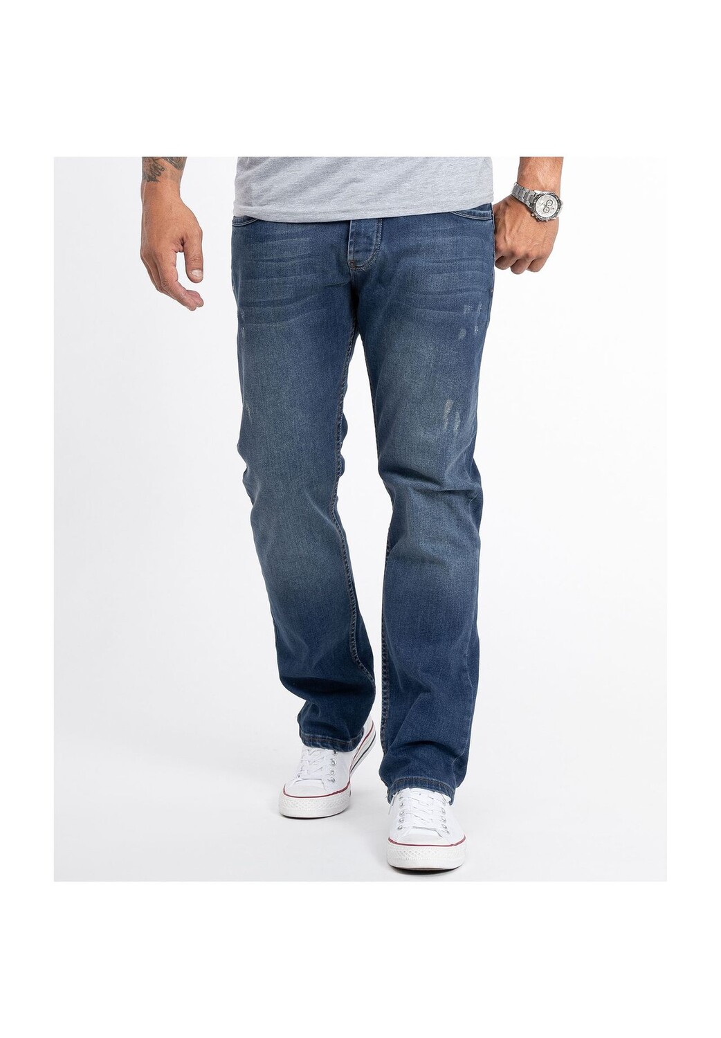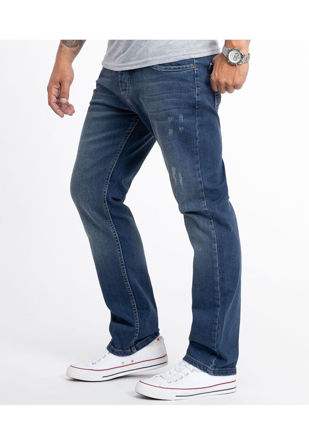 Синие джинсы удобной посадки – классика для повседневной работы, отдыха и отпуска! Многие из наших мужских джинсов от светлого до темно-синего цвета выглядят стильно и поношенно. Брюки повседневного кроя имеют прямые штанины, типичный дизайн с пятью карманами и нашивку в стиле рок-крик. Помимо практичных петель для пояса, они имеют застежку на пуговицу или молнию. Наши мужские джинсы изготовлены из 100% хлопка или имеют высокое содержание хлопка. В некоторых моделях эластичный материал обеспечивает идеальную посадку.