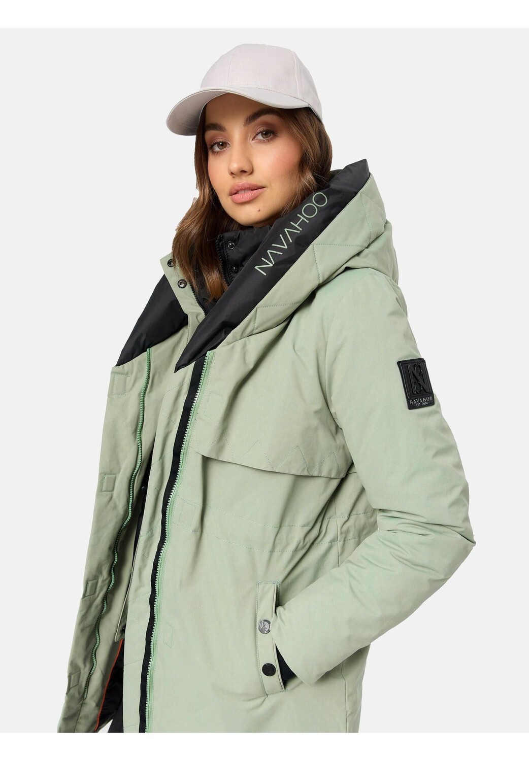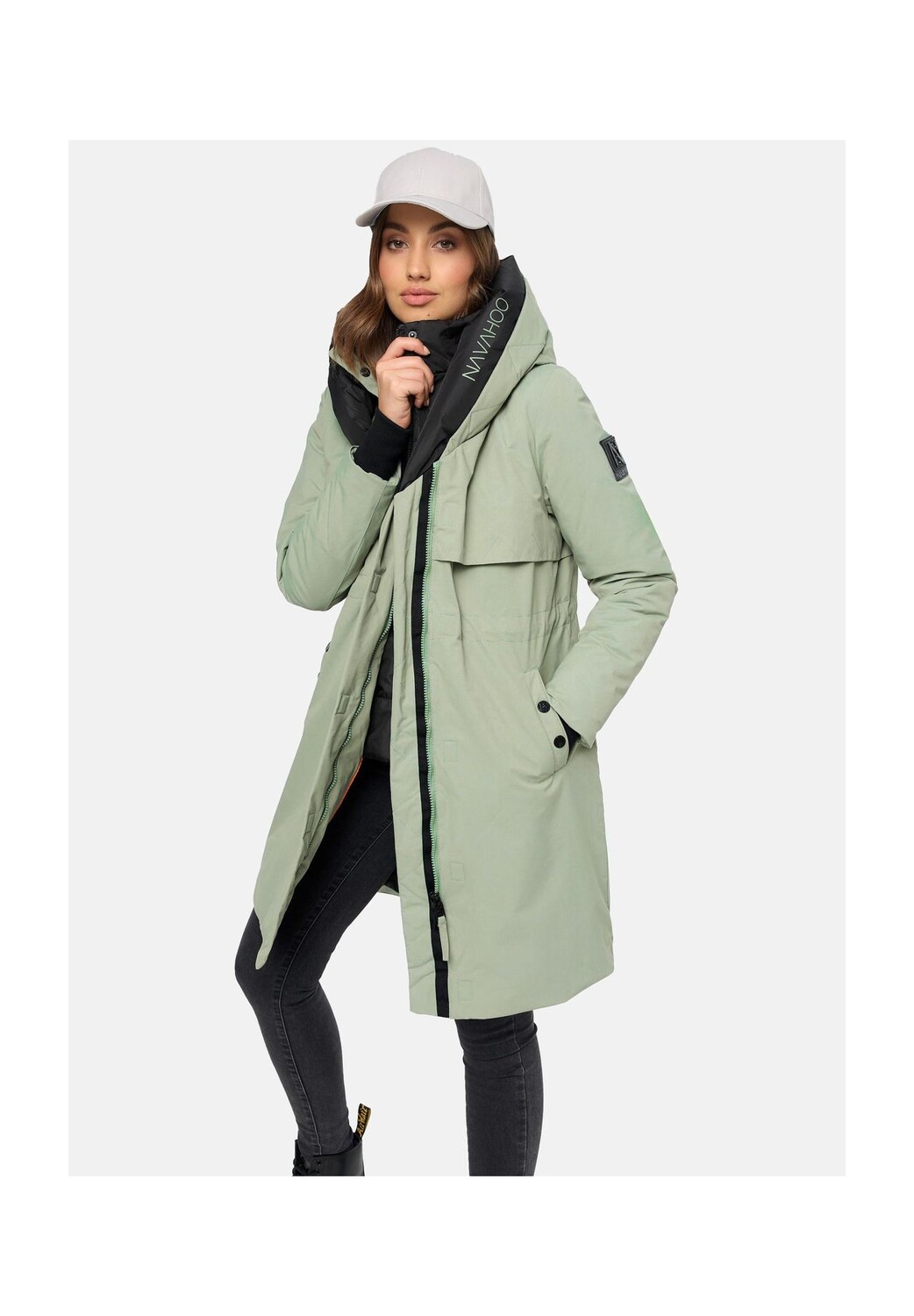 Описание товара: СМОТР: Стильное женское зимнее пальто с контрастными цветными элементами, высоким воротником и большим капюшоном на подкладке от бренда Navahoo – идеальный спутник в холодные дни осени и зимы! МАТЕРИАЛ: Нескользящий, водонепроницаемый и ветронепроницаемый внешний материал, бархатистая мерцающая внутренняя подкладка парки и мягкие ребристые манжеты на концах рукавов обеспечивают идеальную защиту от ветра и непогоды. ФИКСАЦИЯ: Длинная зимняя куртка прямого кроя длиной до до колен, посадку можно регулировать благодаря внутреннему шнурку на талии, который можно регулировать и комбинировать с любым стилем. ДЕТАЛИ: Многочисленные внутренние и внешние карманы, которые согреют ваши руки и обеспечивают достаточно места для хранения всех ценных вещей, внутренняя молния с кнопкой Защитная планка и внешняя двусторонняя молния с магнитом. - Защитная планка с клапаном отталкивает ветер.