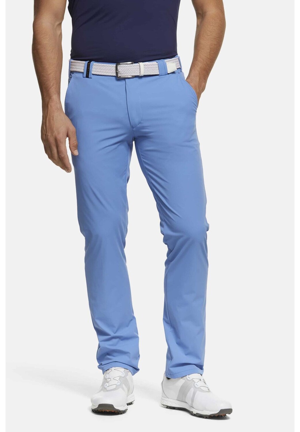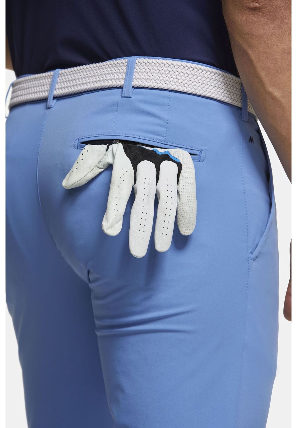 Спортивные брюки-чинос для гольфа имеют французские прорезные карманы, типичный для Meyer потайной карман безопасности и два задних кармана с двойной окантовкой. Как и все брюки серии Golf, одна из последних имеет невидимую силиконовую полоску, предотвращающую выскальзывание перчаток. Другой задний карман закрывается на серебряную молнию для большей безопасности. Удобный эластичный пояс закрывается застежкой, обеспечивающей максимальную стабильность размеров с помощью застежки-кнопки. Дышащий функциональный хлопок особенно легок и приятен для кожи, что обеспечивает неповторимый комфорт при ношении брюк Meyer.