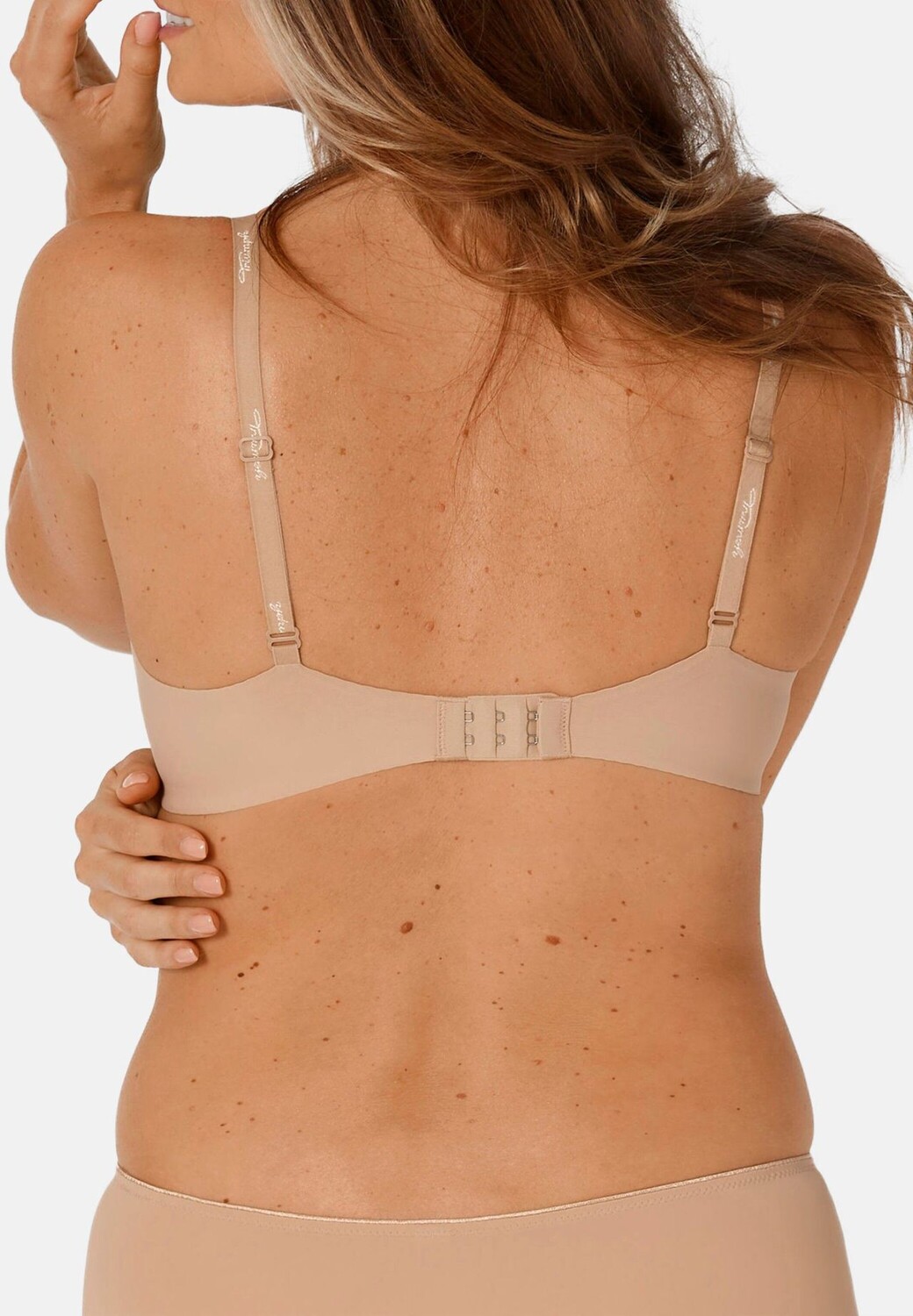 Насколько незаметен: благодаря особенно плоским бретелям и плотно прилегающим фигурным чашкам на подкладке этот бюстгальтер-футболка на косточках не виден под одеждой. Благодаря мягкому инновационному материалу из ткани-спейсера нежный бюстгальтер BODY MAKE-UP ощущается как вторая кожа.