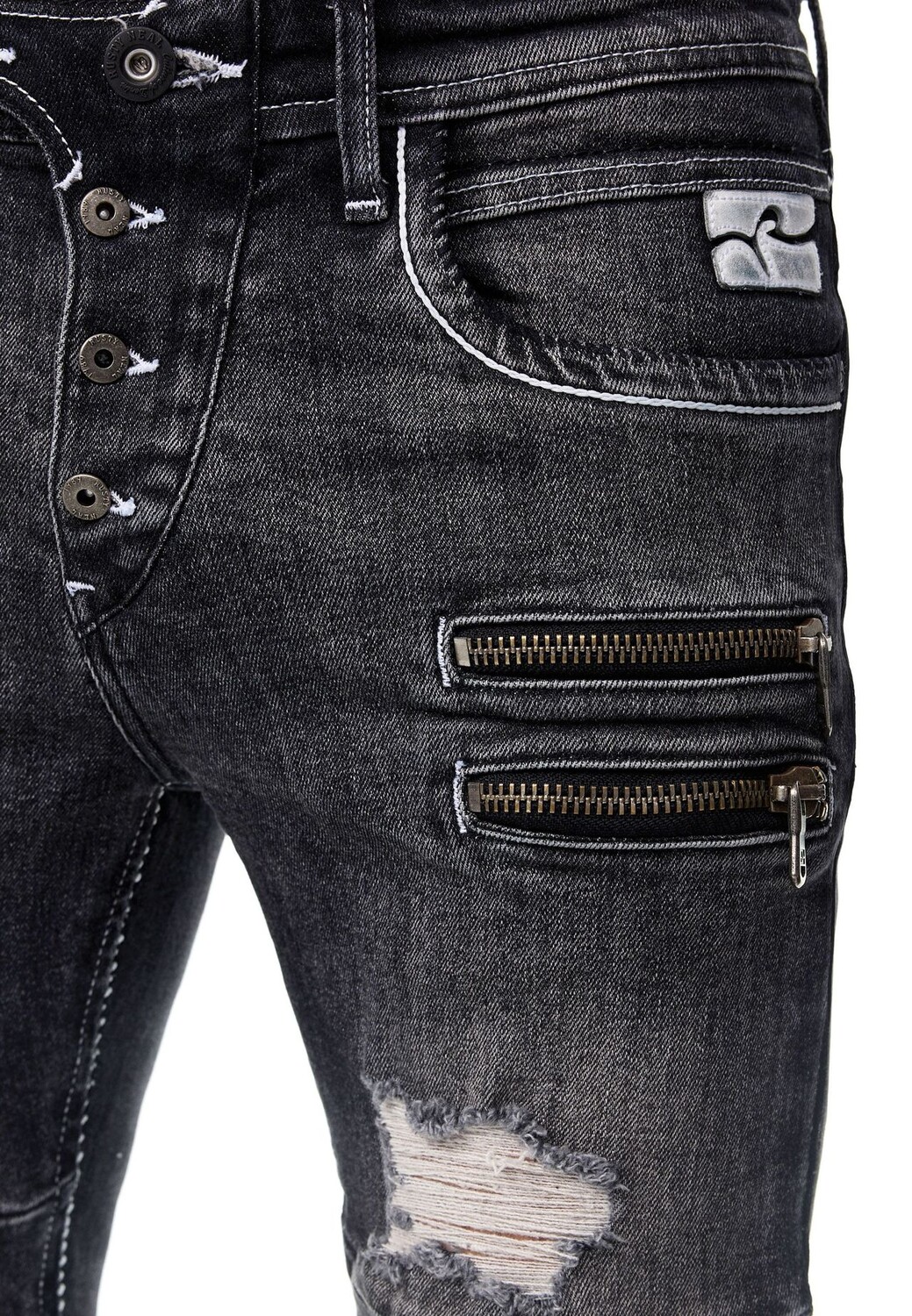 Эти крутые джинсы от Rusty Neal создают образ в стиле рок для вечеринок и концертов. Он изготовлен из высококачественного хлопка и содержит небольшое количество эластана, что обеспечивает дополнительный комфорт. Эти джинсы скинни очень модны и идеально подходят для ношения с тяжелыми ботинками и белой рубашкой — сочетание, которое всегда работает! Небольшие боковые карманы на молнии и несколько пуговиц дополняют броский дизайн.
