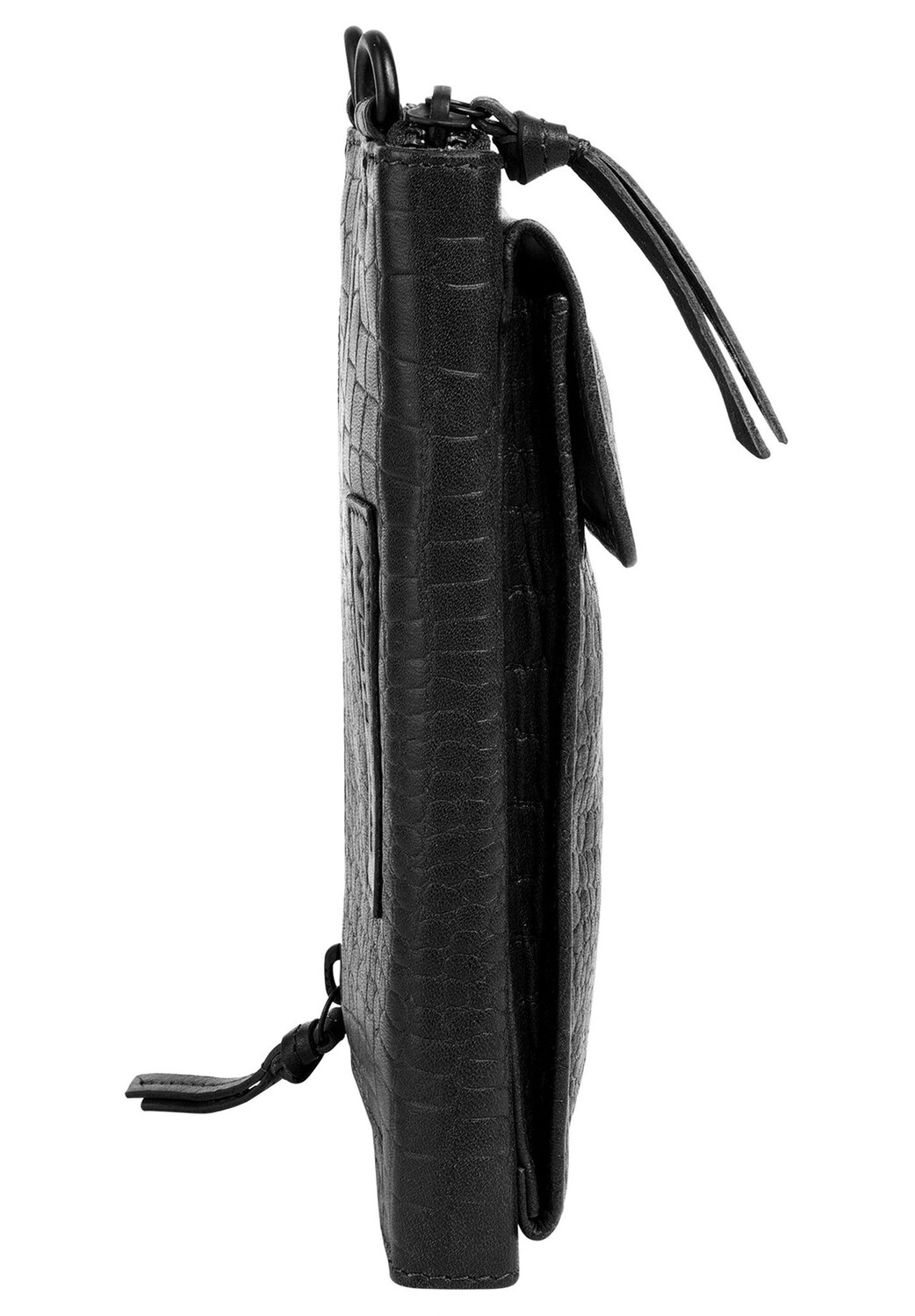 Особенные характеристики 0,3 кг Высота 12 см x ширина 20 см x глубина 3 см 100% воловья кожа 12 отделений для визиток внутри 2 внутренних кармана регулируемый съемный ремень на плечо (70–130 см) Цвет: черный