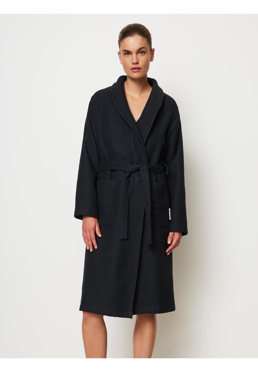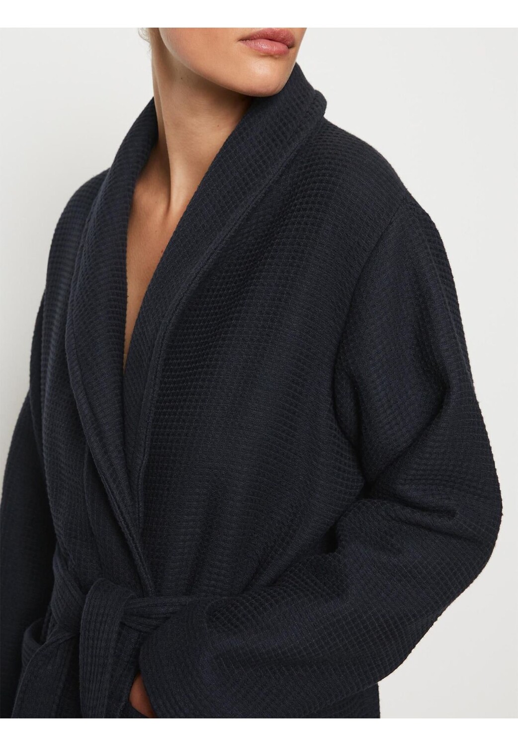 Сознательный уют. Халат премиум-класса из органического хлопка, сертифицированного GOTS, с современной внешней отделкой вафельного пике и мягкой махровой внутренней частью.