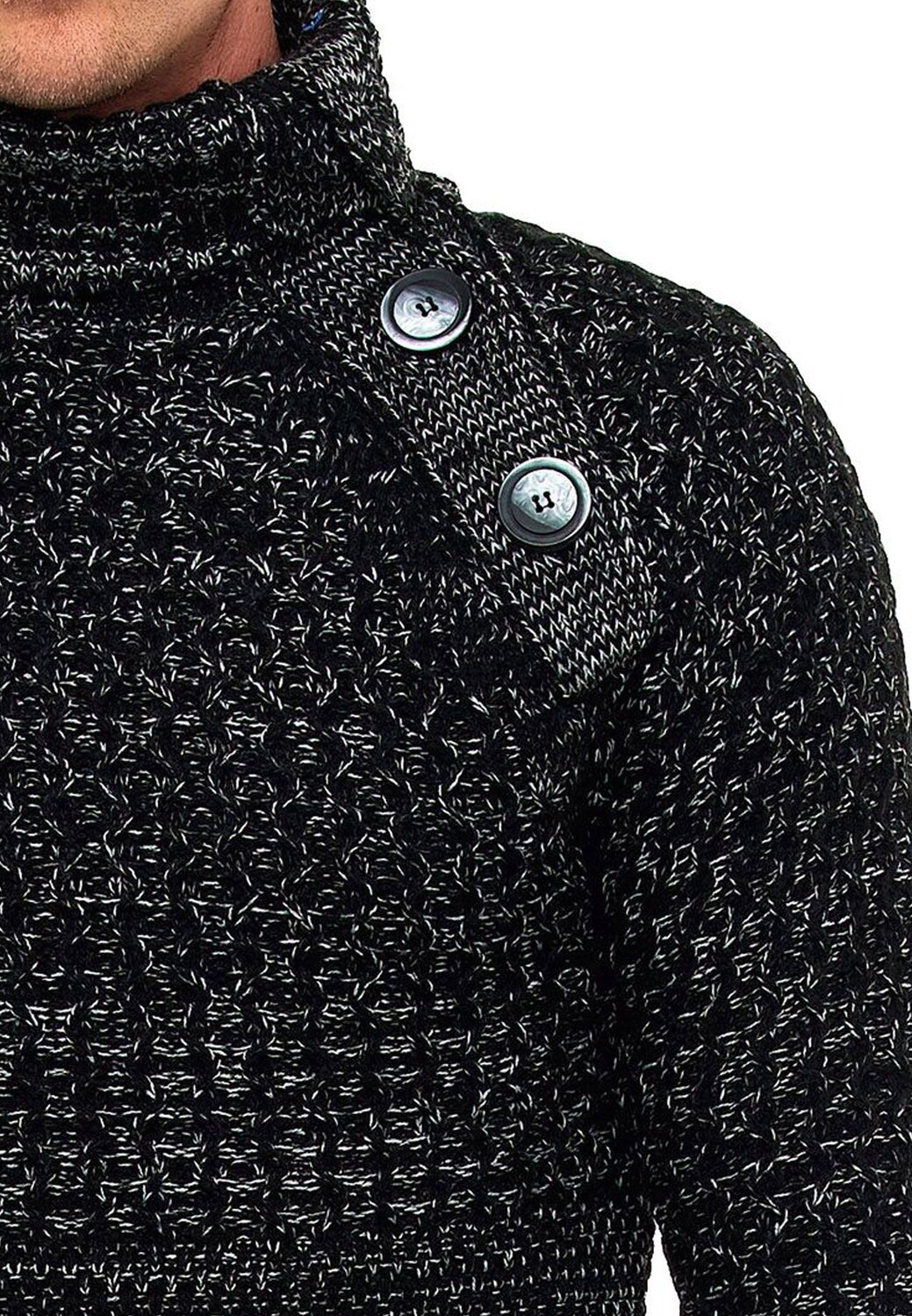 Особенности Модный вязаный свитер от Rusty Neal Из полиакрила и хлопка Модный объемный свитер вязаный вид Декоративные пуговицы С теплой водолазкой также подходит для холодных дней Универсально и легко комбинируется