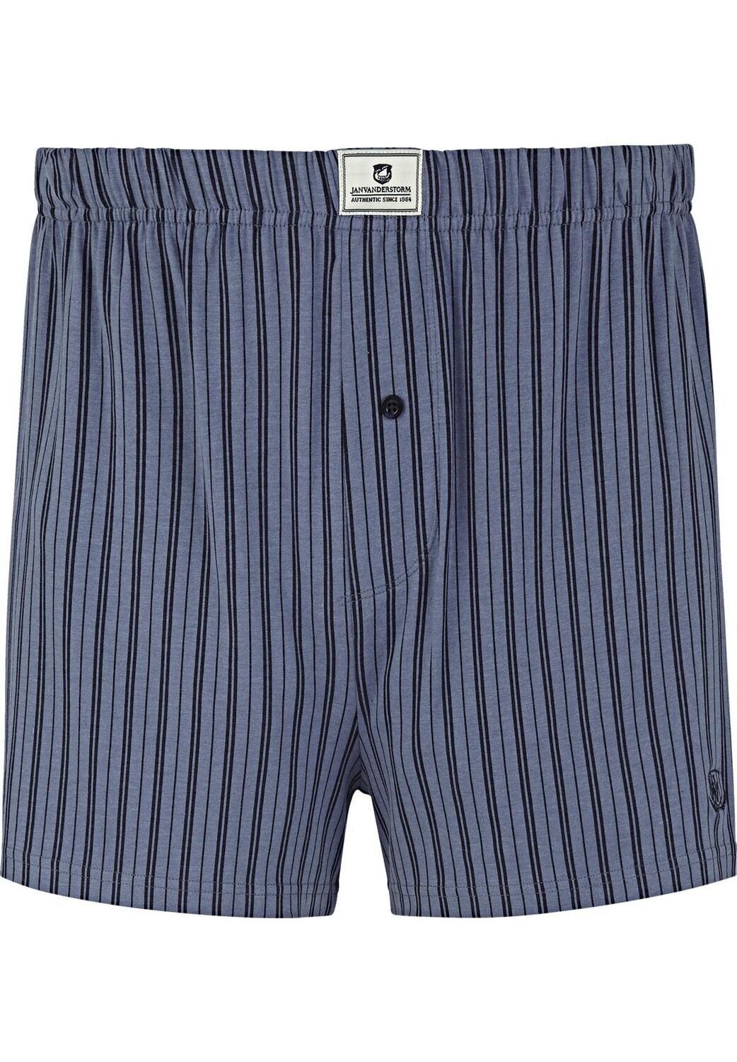 Особенности из эластичного одинарного трикотажа Гладить при низкой температуре сине-серый Стирать с похожими цветами, стирать наизнанку, гладить наизнанку 2 упаковки боксёрских шорт THURE в двух вариантах Удобная посадка - из эластичного одинарного трикотажа Носимый микс хлопка Нашивка на поясе, планка с имитацией пуговиц Вышитая монограмма JAN VANDERSTORM Примечание по размеру: Товар нормальный Характеристики
