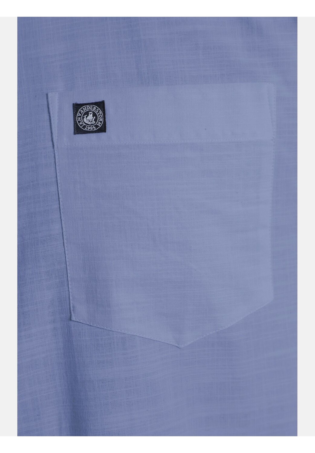 Особенности Стандартная стирка при 40° Стирать с похожими цветами, Стирать наизнанку, слева от утюга, стирать в сетке Синий под лен Рубашка KALLU структурированного дизайна Комфортная посадка - удобный и прямой крой Структурированная ткань, чистая хлопок Короткий воротник-стойка на пуговице