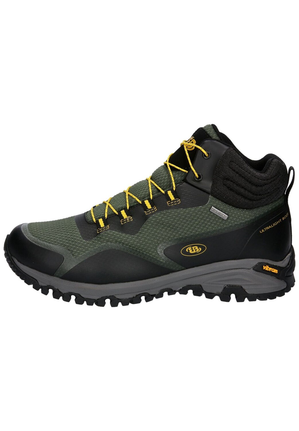 уличные ботинки Mount Clarke от Brütting из нейлона с синтетической отделкой; Шнуровка; водонепроницаемая и дышащая климатическая мембрана Comfortex; мягкая текстильная подкладка; сменная текстильная стелька Ortholite; устойчивая и нескользящая подошва Vibram; удобный стержень и набивка языка
