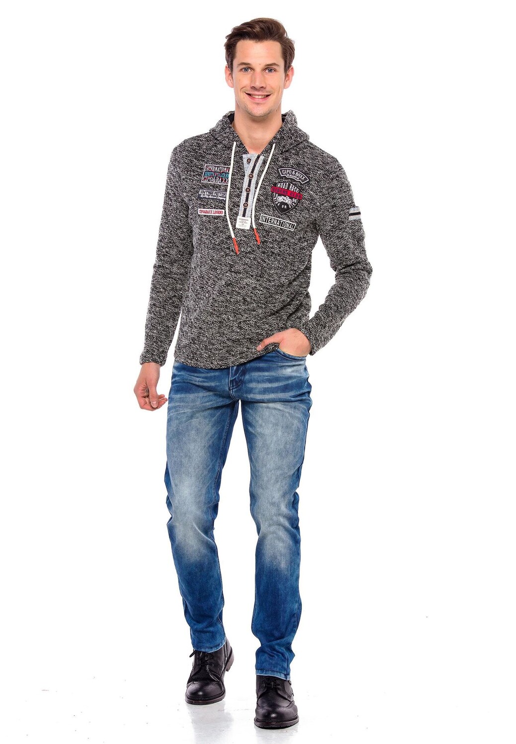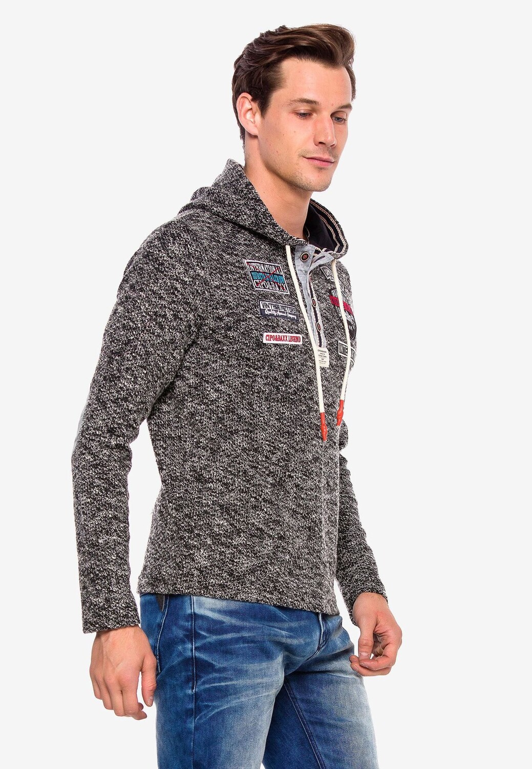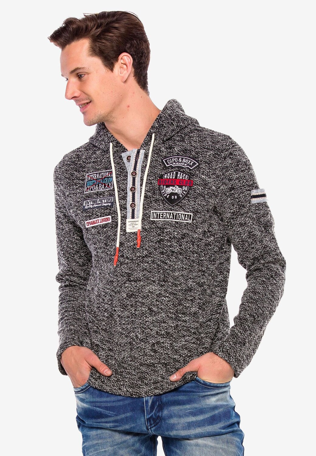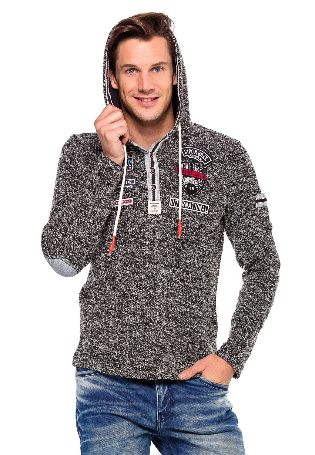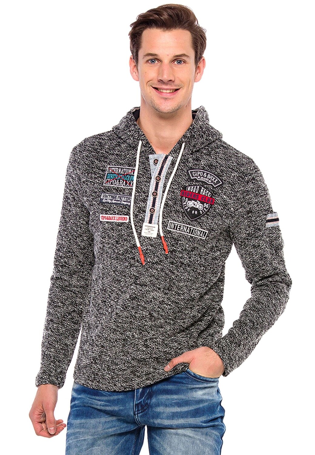Особенности Мягкий свитшот Cipo & Baxx для мужчин Из хлопка и полиэстера и полиакрила Оснащен планкой на пуговицах и капюшоном Заплатки на груди привлекают внимание Идеально подходят для холодных дней Длина рукава: Длинный рукав