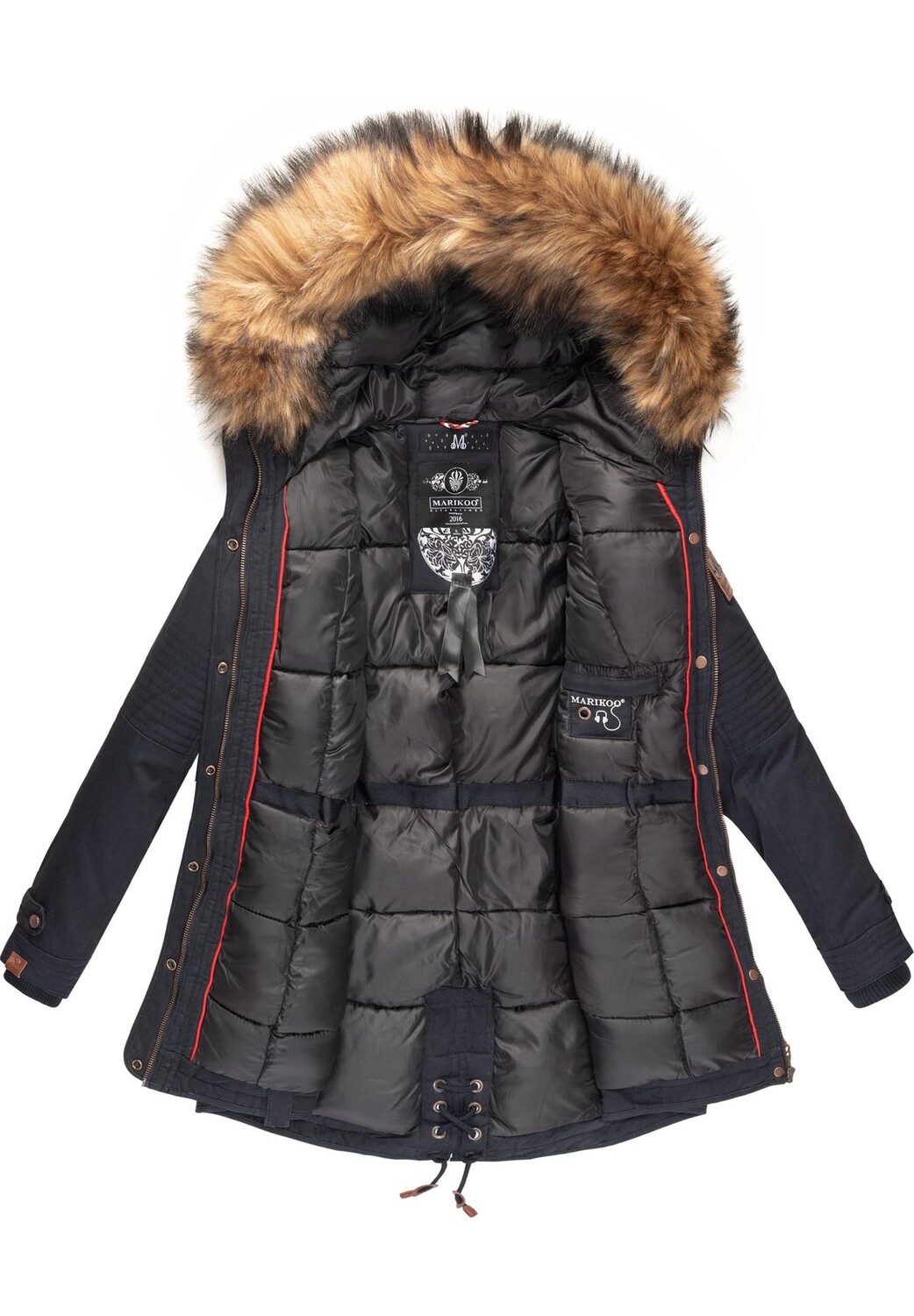 Описание товара: ВИД: Женская зимняя парка от Marikoo с мягким большим капюшоном из искусственного меха (искусственный мех можно снять) и привлекательной талией - идеальна для холодного времени года (осень и зима). МАТЕРИАЛ: Зимнее пальто. Изготовлен из нескользящего хлопкового внешнего материала, теплая внутренняя подкладка модно стегана - на ощупь как любимое пуховое одеяло, очень удобна в ношении. ПОДХОД: парка для активного отдыха отлично подчеркивает фигуру благодаря красивому крою и шнурку на талии, большой длине. по низу и с вырезом «ласточкин хвост» (длиннее сзади). ДЕТАЛИ: Мягкая и теплая набивка, карманы с клапанами на подкладке (для предотвращения холода рук), стильная потайная планка на кнопках, эластичные ребристые манжеты. Женская зимняя куртка/короткое пальто с теплой подкладкой. от Marikoo — идеальный универсал для холодного сезона, его не должно быть в любом гардеробе! Теплое зимнее полупальто с капюшоном из искусственного меха от Marikoo Нескользящий, мягкий внешний материал из 100% хлопка.