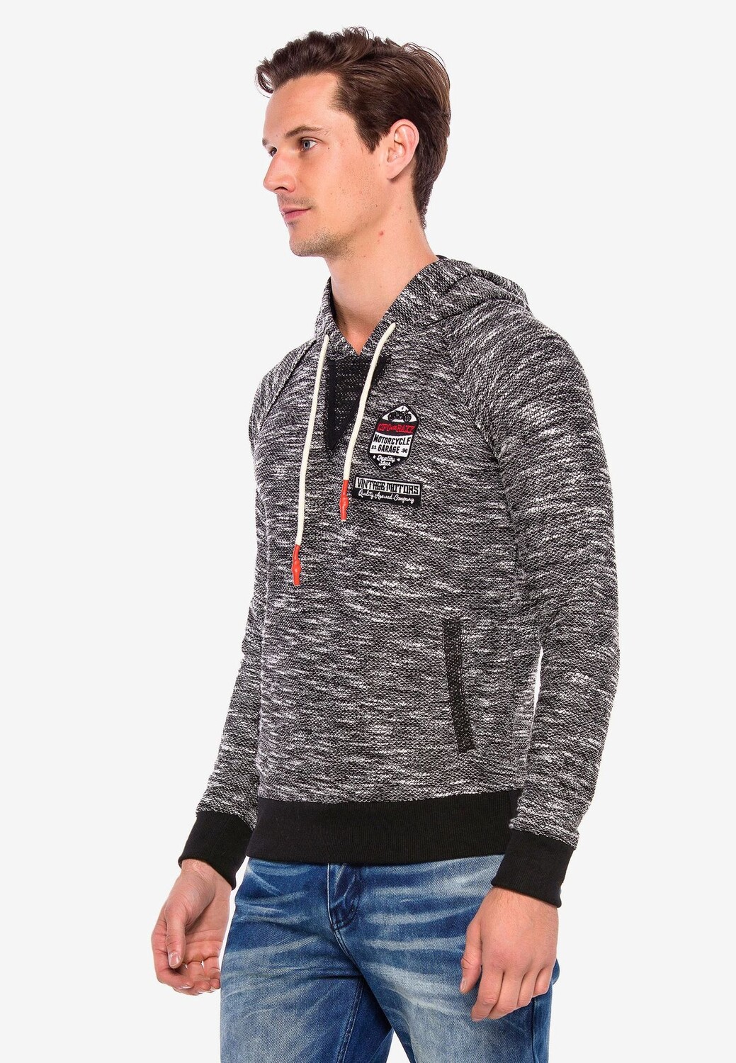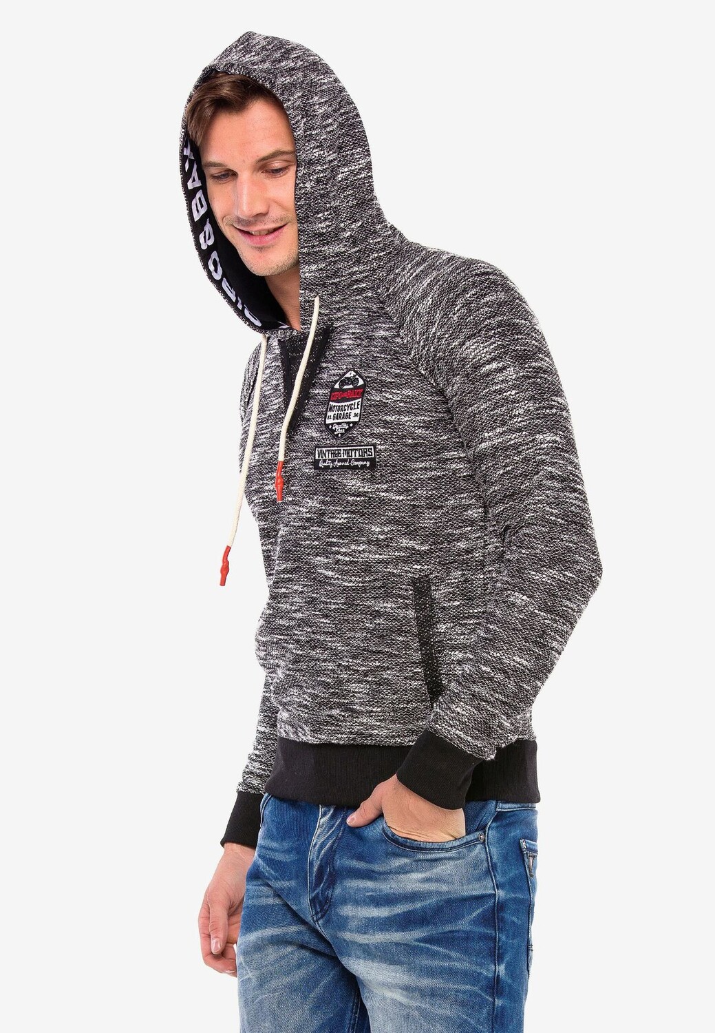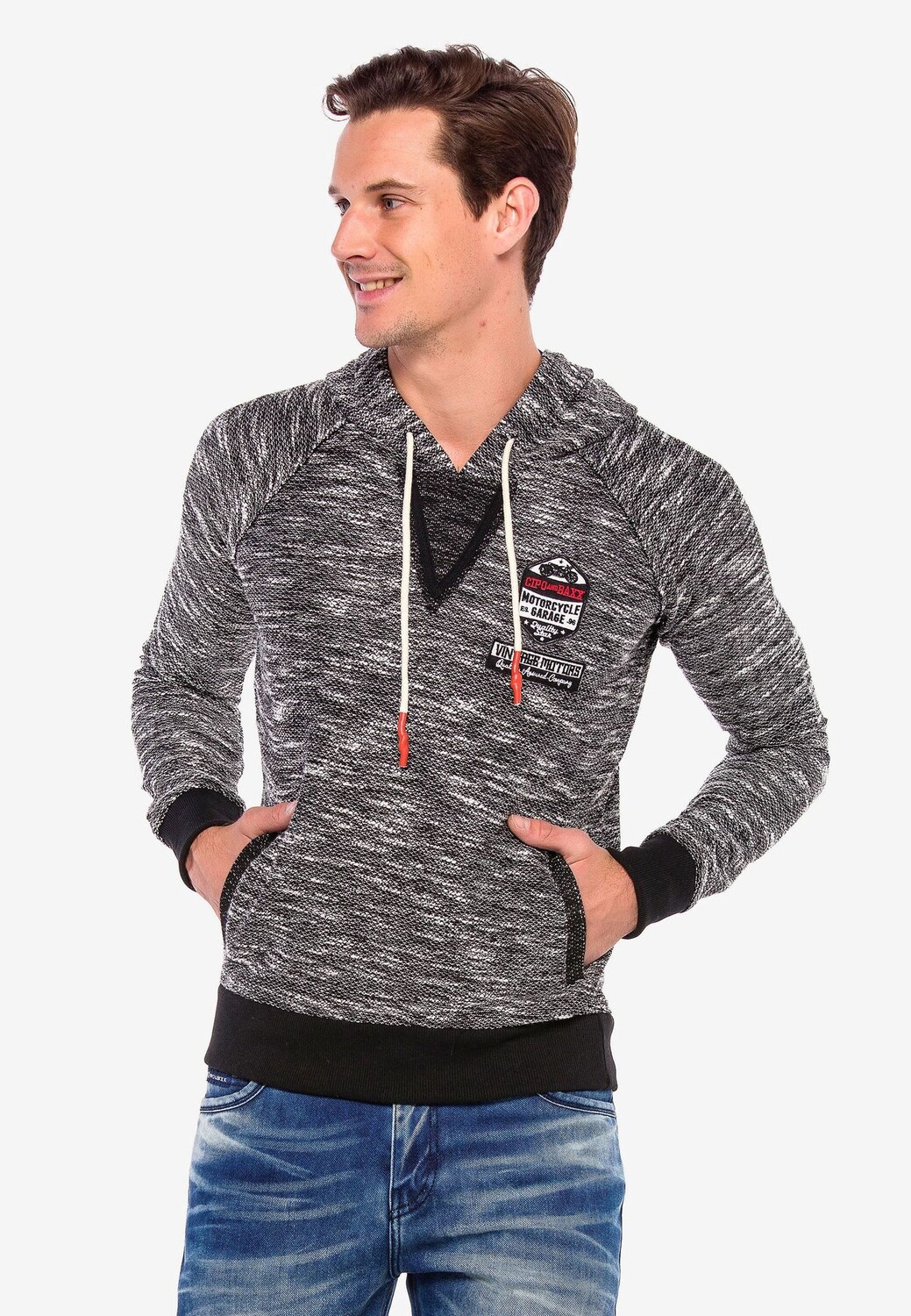 Этот мужской вязаный свитер с капюшоном от Cipo & Baxx — именно то, что вам нужно, если вы ищете спортивный и повседневный предмет одежды. Абсолютно модный, пестрый свитер с контрастной эластичной кромкой и манжетами впечатляет своим комфортом и универсальностью. CL362