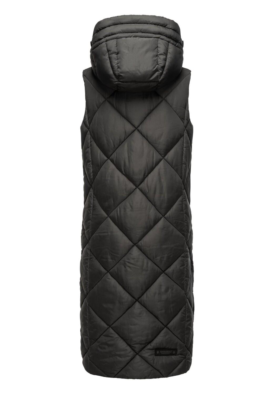 Описание товара: ВИД: Длинный женский жилет без рукавов с модной клетчатой ​​стежкой от Navahoo - при правильном сочетании он идеален для холодного времени года (осени и зимы), а также для прохладных весенних дней. МАТЕРИАЛ: Жилет для отдыха (длинный жилет) изготовлен из матового мерцающего внешнего материала и имеет теплую, мягкую подкладку, которая очень удобна в ношении и в сочетании с воротником-стойкой прекрасно сохраняет тепло. поэтому носите под ним толстый свитер. Он имеет большую длину примерно до середины икры, но благодаря боковым разрезам (на кнопках) никоим образом не ограничивает свободу движений. ДЕТАЛИ: Стеганая модель без рукавов.