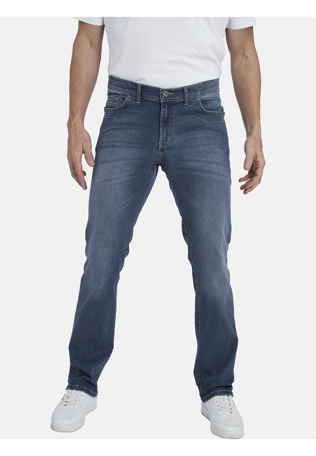 Описание товара: JAN VANDERSTORM — ваш эксперт по мужской моде больших размеров. Джинсы PEEKE с заниженной талией выглядят очень прочными и надежными – и так оно и есть. JAN VANDERSTORM здесь уделил особое внимание деталям – дополнительной строчке по бокам бедер и характерным заклепкам на передних карманах классических пятикарманных джинсов. Тисненый фирменный лейбл сзади на поясе подчеркивает мужественный внешний вид. 98% хлопок, 2% эластан. Машинная стирка. +ПОДХОДЯЩИЙ ПУНКТ: Удобный стиль из нашей коллекции +Fit. Благодаря нашему специальному крою с заниженным поясом эти брюки удобно сидят под животом спереди, а более высокий вырез сзади предотвращает выскальзывание верха. Эти брюки доступны в специальном крое +короткого размера с регулируемой шириной талии по мере увеличения размера одежды. Высота талии и планка на молнии в этой модели укорочены, что обеспечивает идеальную посадку мужчинам с короткими ногами.