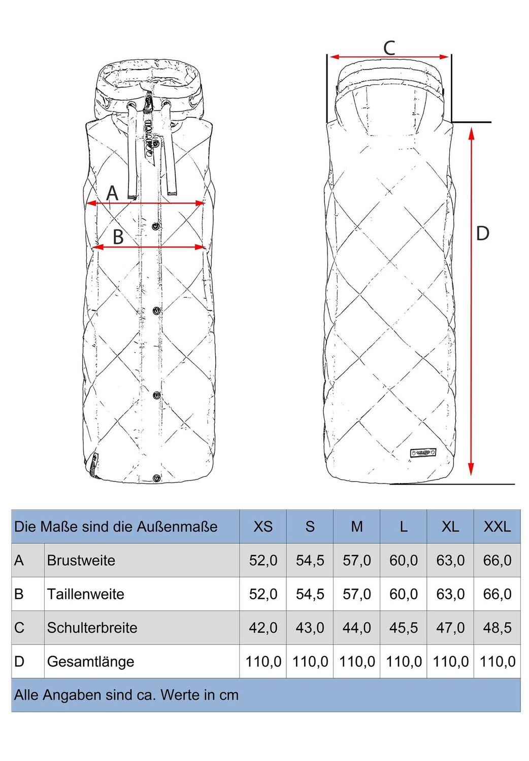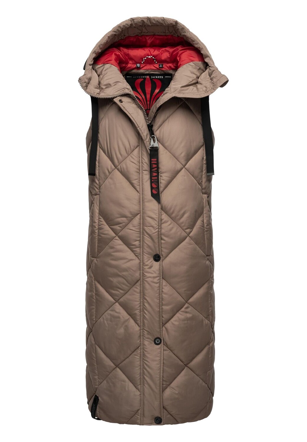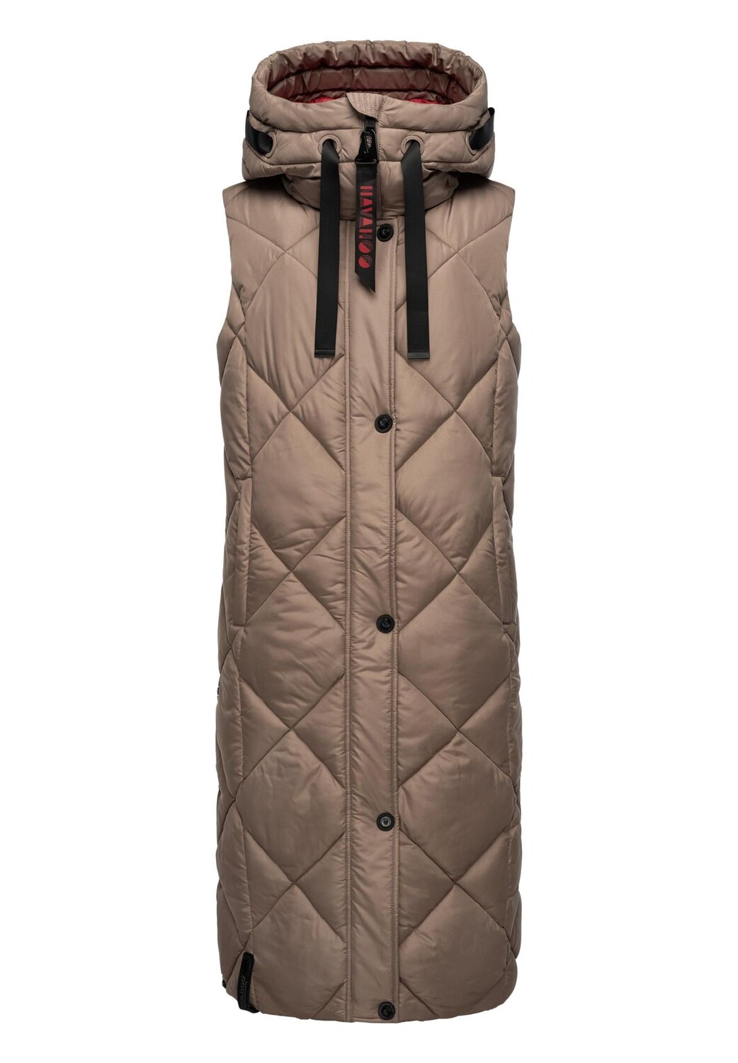 Описание товара: ВИД: Длинный женский жилет без рукавов с модной клетчатой ​​стежкой от Navahoo - при правильном сочетании он идеален для холодного времени года (осени и зимы), а также для прохладных весенних дней. МАТЕРИАЛ: Жилет для отдыха (длинный жилет) изготовлен из матового мерцающего внешнего материала и имеет теплую, мягкую подкладку, которая очень удобна в ношении и в сочетании с воротником-стойкой прекрасно сохраняет тепло. поэтому носите под ним толстый свитер. Он имеет большую длину примерно до середины икры, но благодаря боковым разрезам (на кнопках) никоим образом не ограничивает свободу движений. ДЕТАЛИ: Стеганая модель без рукавов.