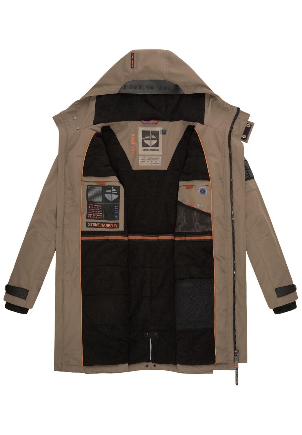 Описание товара: ВИД: Городская мужская парка от премиального бренда STONE HARBOR с крутыми контрастными деталями из различных высококачественных материалов, безошибочно узнаваемым сложным металлическим логотипом на рукаве. МАТЕРИАЛ: Уличное пальто из прочного водного материала. - ветроотталкивающий внешний материал с мягкой флисовой подкладкой, которая сохраняет тепло и тепло; Длинная куртка имеет подкладку средней толщины и идеально подходит для переходного периода и мягкой зимы. ФИКСАЦИЯ: Короткое пальто большой длины примерно до середины бедра с разрезом сзади, концы рукавов можно заузить с помощью кнопок. Капюшон также можно регулировать с помощью внутреннего шнурка. ДЕТАЛИ: Многочисленные внутренние и внешние карманы обеспечивают достаточно места для хранения вещей, двусторонняя передняя молния закрыта магнитным клапаном, боковые карманы на флисовой подкладке и высокий воротник от холодного ветра Городское пальто из прочной водоотталкивающей ткани со множеством функций.. .