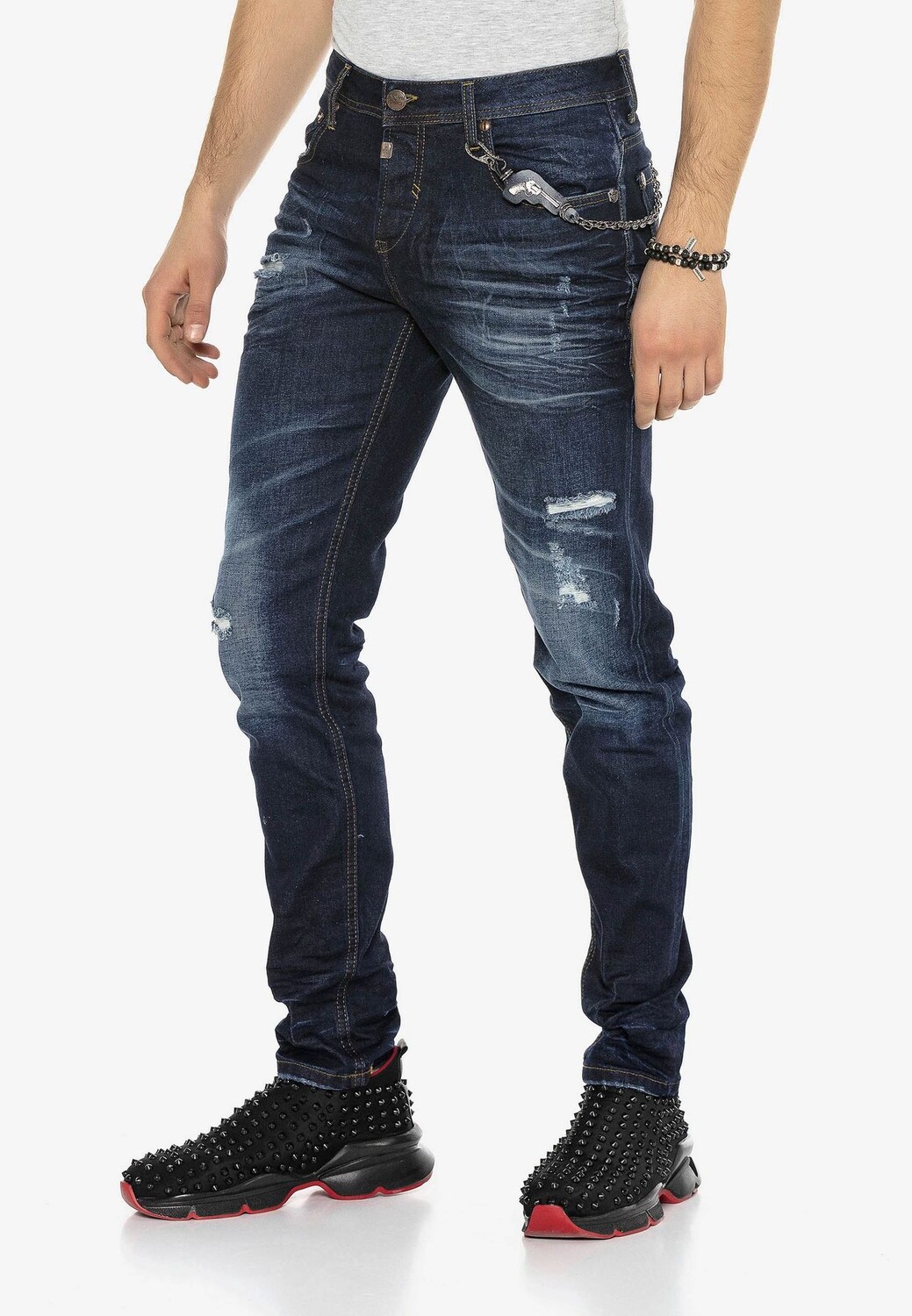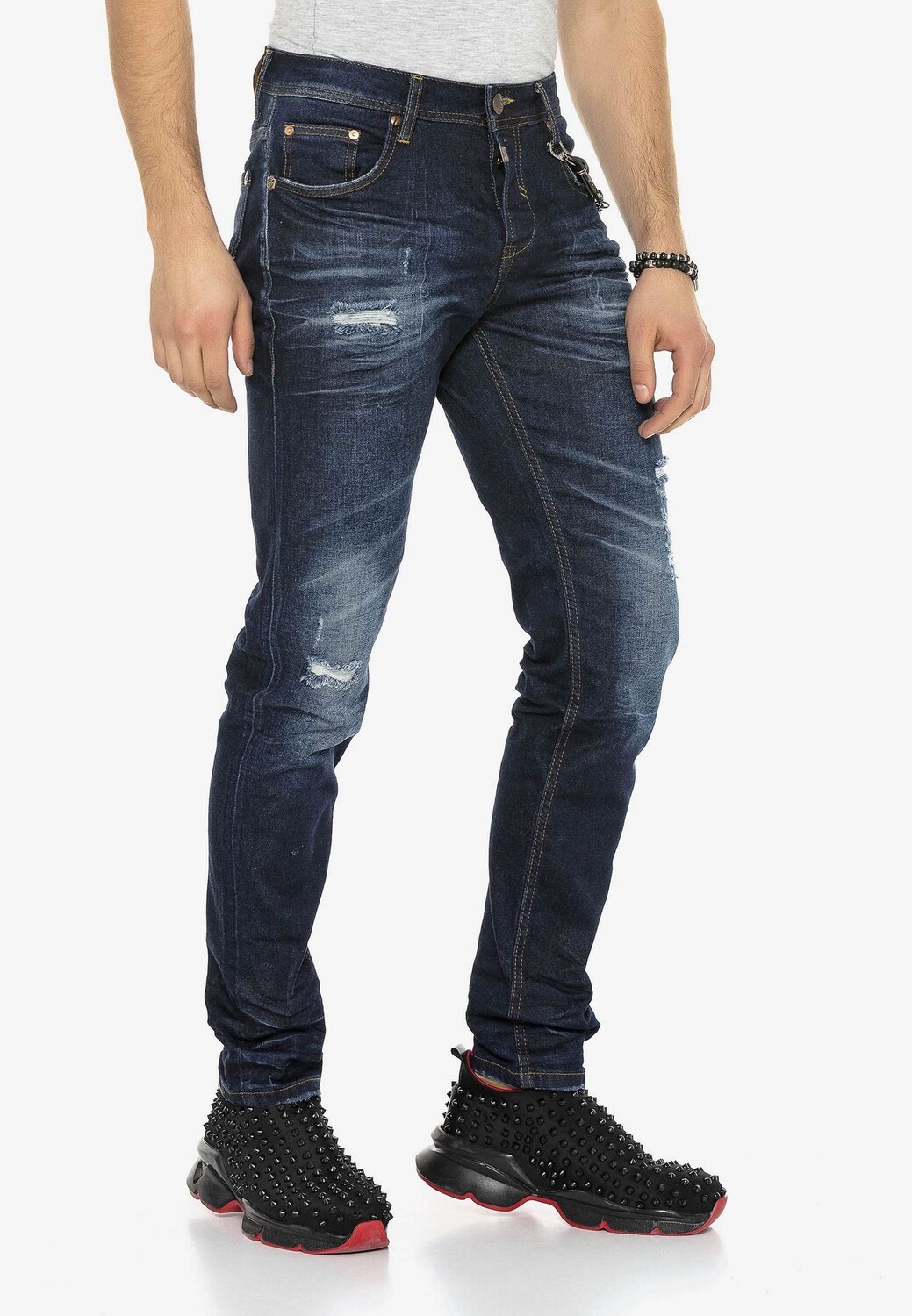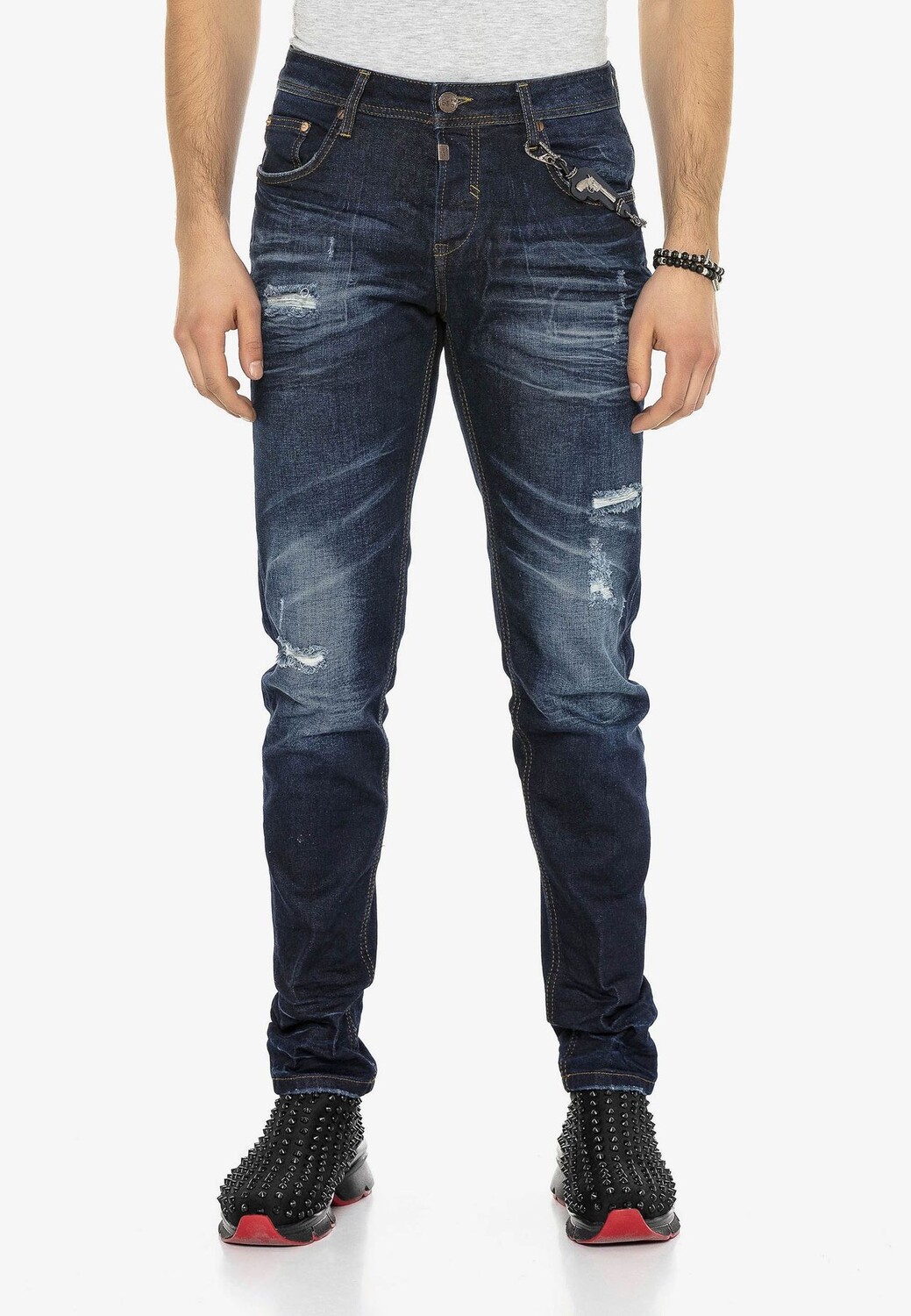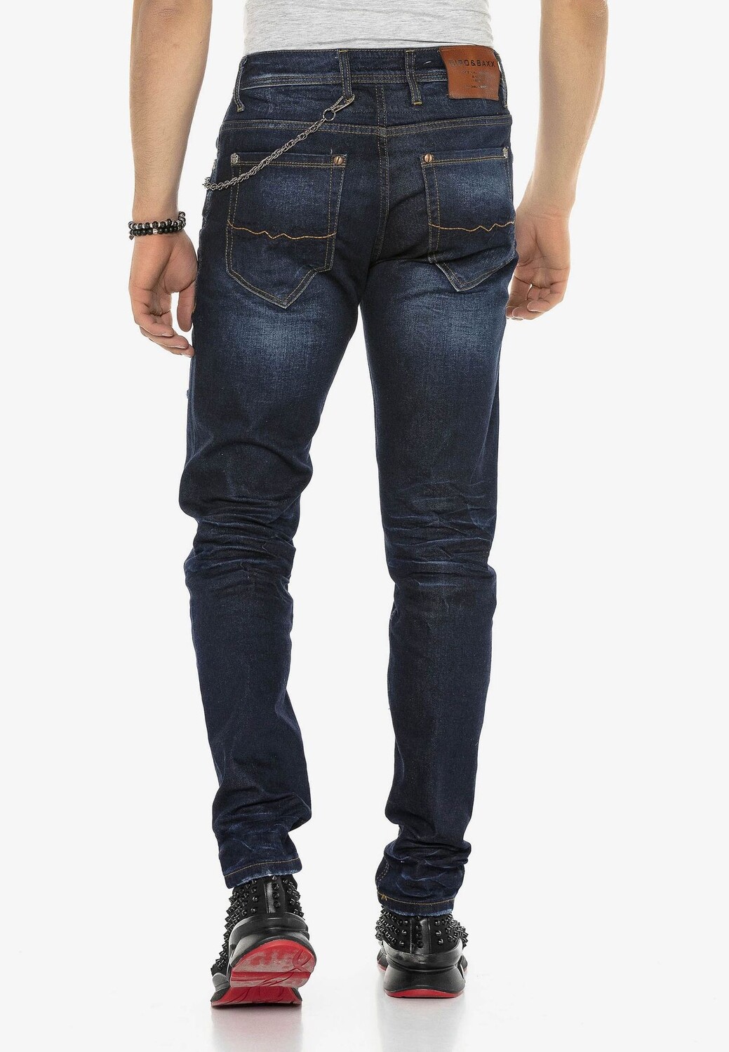 Джинсы прямого кроя от Cipo & Baxx идеально подходят для модных образов в повседневной жизни. Прежде всего, он отличается стильным внешним видом, который привлекает внимание использованными элементами, модной потертой и декоративными швами. Благодаря узкому крою модель прекрасно сидит на теле и поэтому может использоваться для создания комбинаций, облегающих фигуру. Обработанная хлопчатобумажная ткань с эластаном очень мягкая и удобная в носке, поэтому брюки незаменимы для модных образов для отдыха.