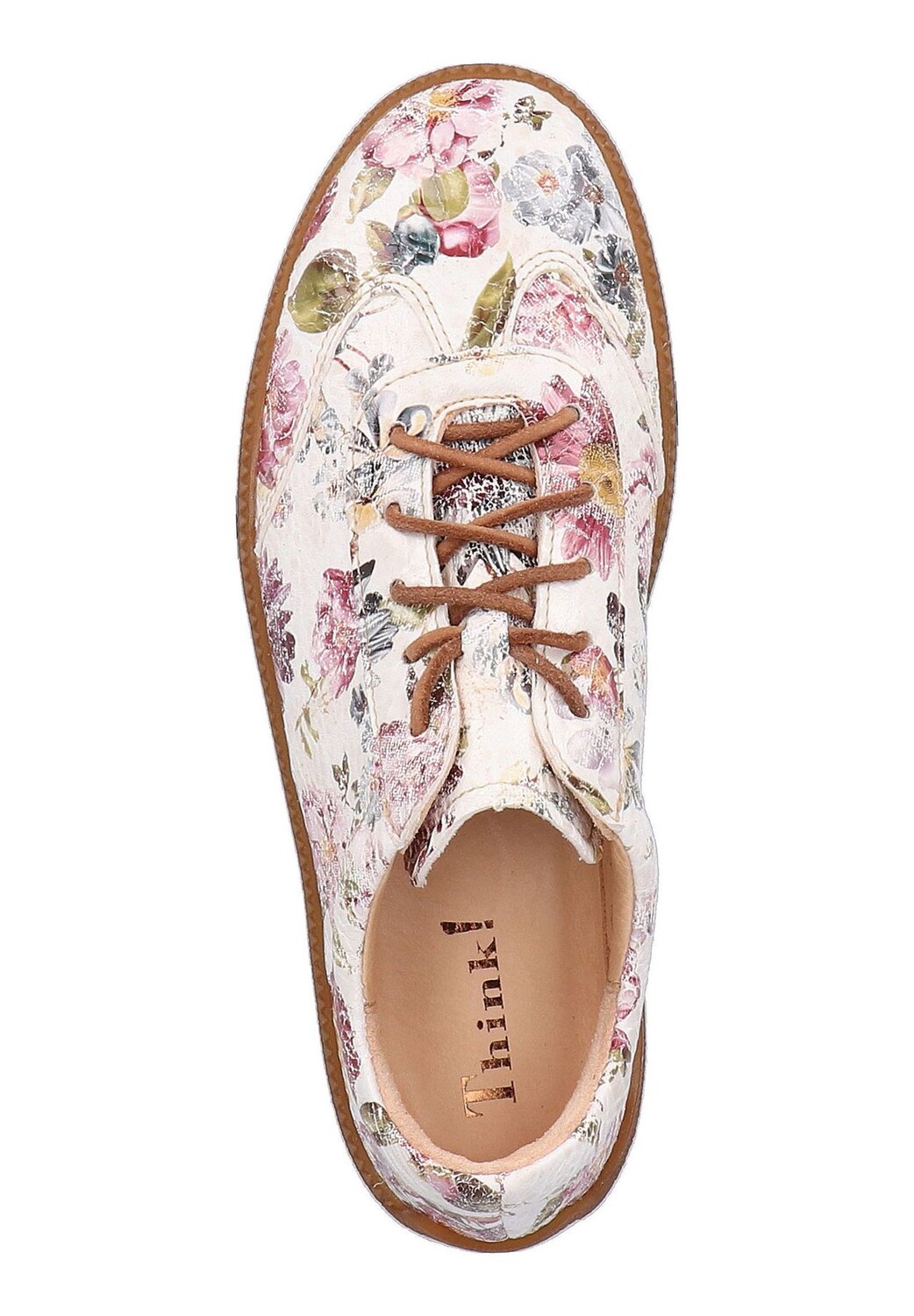 С этой модной кожаной шнуровкой от Think! вы прекрасно подготовлены к теплому сезону. Гармоничное цветовое сочетание с цветочным принтом и узкой шнуровкой делают полуботинки стильным спутником во многих случаях.