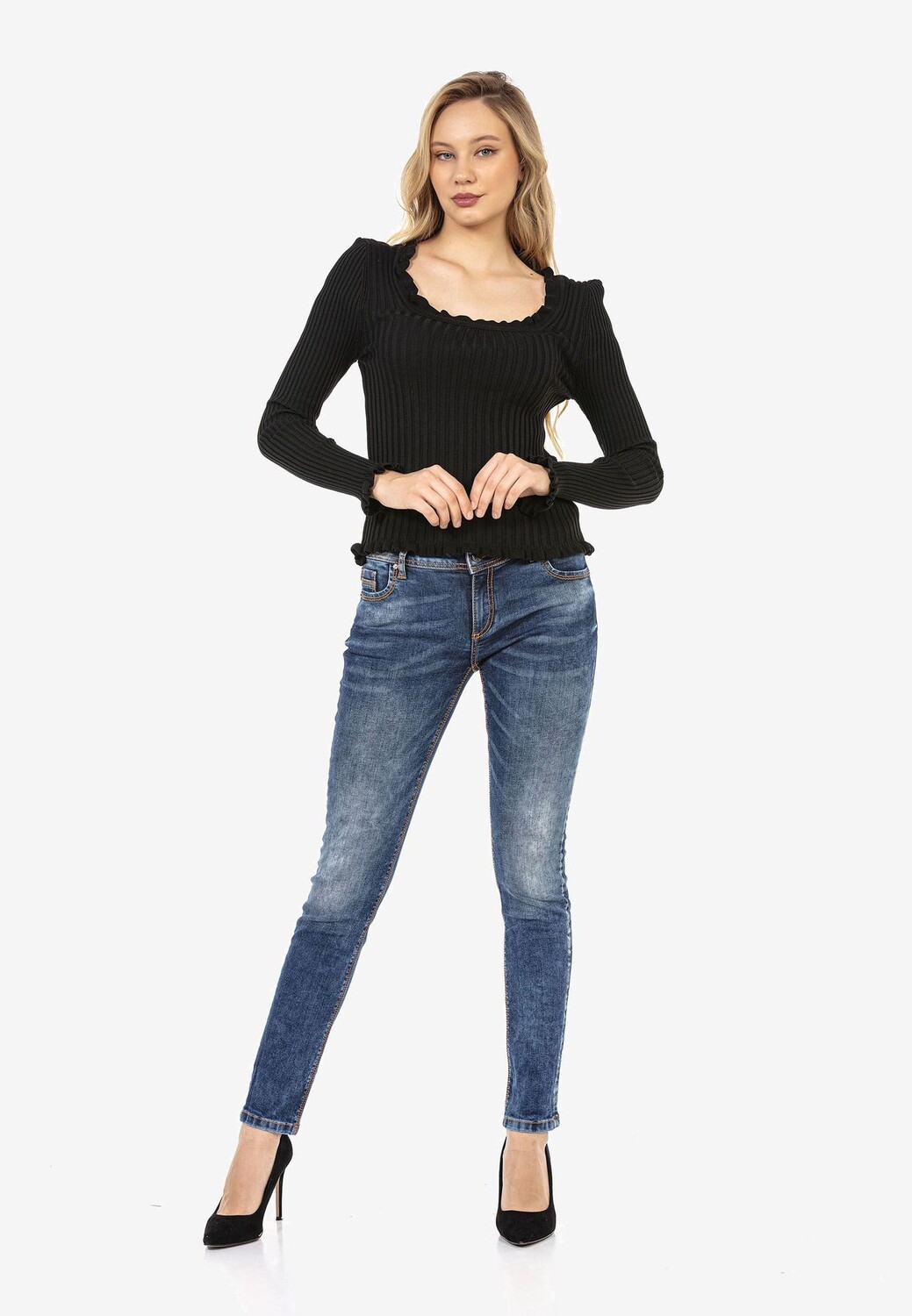 Описание товара: Джинсы по-прежнему очень модны. Cipo & Baxx представляет эту облегающую модель для женщин, которая бросается в глаза моде и придает каждому образу что-то определенное. Модель изготовлена ​​из хлопка и обеспечивает высокий комфорт благодаря небольшому количеству эластана. Он имеет прохладную расцветку, которая чудесно дополняется контрастными швами, создавая захватывающий образ, который сразу же оживит любую комбинацию, какой бы простой она ни была.