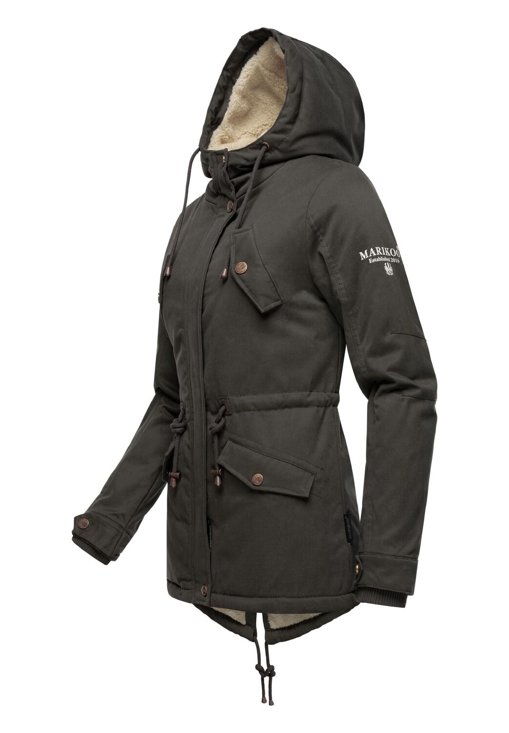 Описание товара: ВИД: Теплая женская хлопковая парка на зиму с мягкой внутренней подкладкой и модными деталями медного цвета - идеально подходит для холодного времени года (осень и зима). МАТЕРИАЛ: Мягкий и нескользящий внешний материал. из хлопка, внутренняя часть зимней куртки на высоте. Капюшон на подкладке из приятного мягкого плюшевого меха, обеспечивающего высокий уровень комфорта. ФИКСАЦИЯ: зимнее пальто узкого кроя, регулируемая посадка с помощью кулиски на талии, большая длина до ягодиц. и немного длиннее сзади (прорезь для ходьбы сзади). ДЕТАЛИ: Внутри полностью на мягкой флисовой подкладке Тедди, 2 внешних кармана на подкладке (для предотвращения холода рук), практичный разрез на спине служит защитой от ветра. Пальто от Marikoo — замечательный универсальный вариант для любого зимнего отдыха: уютное, с теплой подкладкой, его можно сочетать с разными нарядами! Высочайшее качество и высокое качество изготовления. Парка выполнена с большим вниманием к деталям.