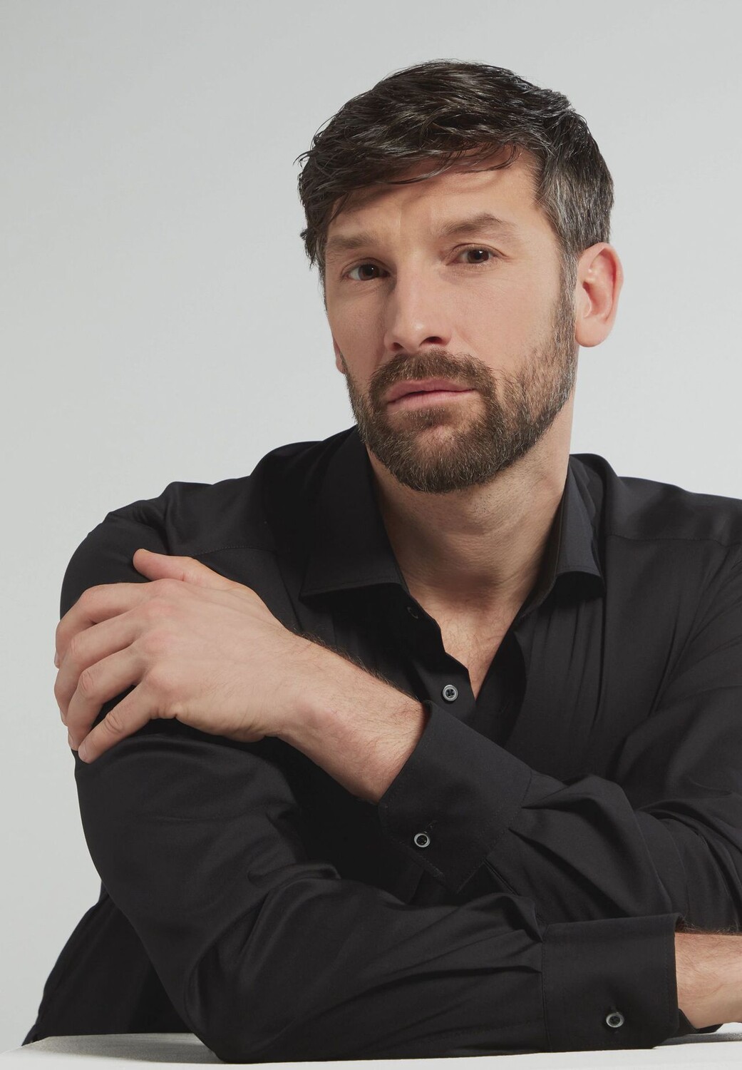Деловая рубашка, современный крой, воротник акулы, мужская ETERNA, черный 8 844₽
