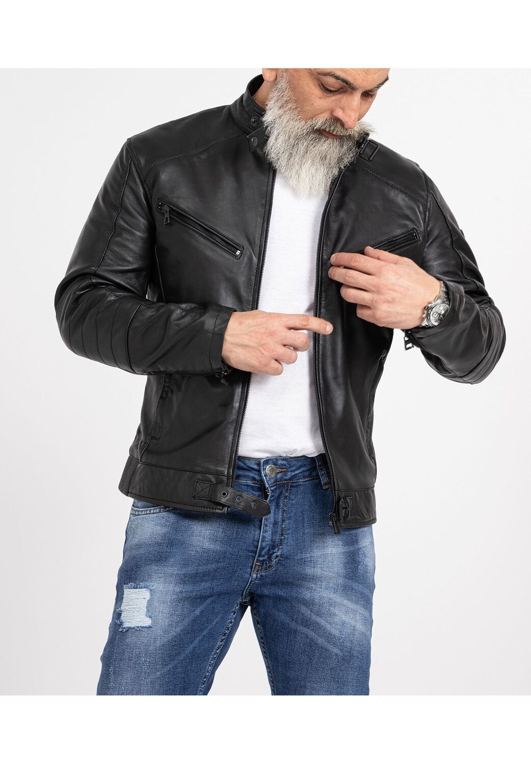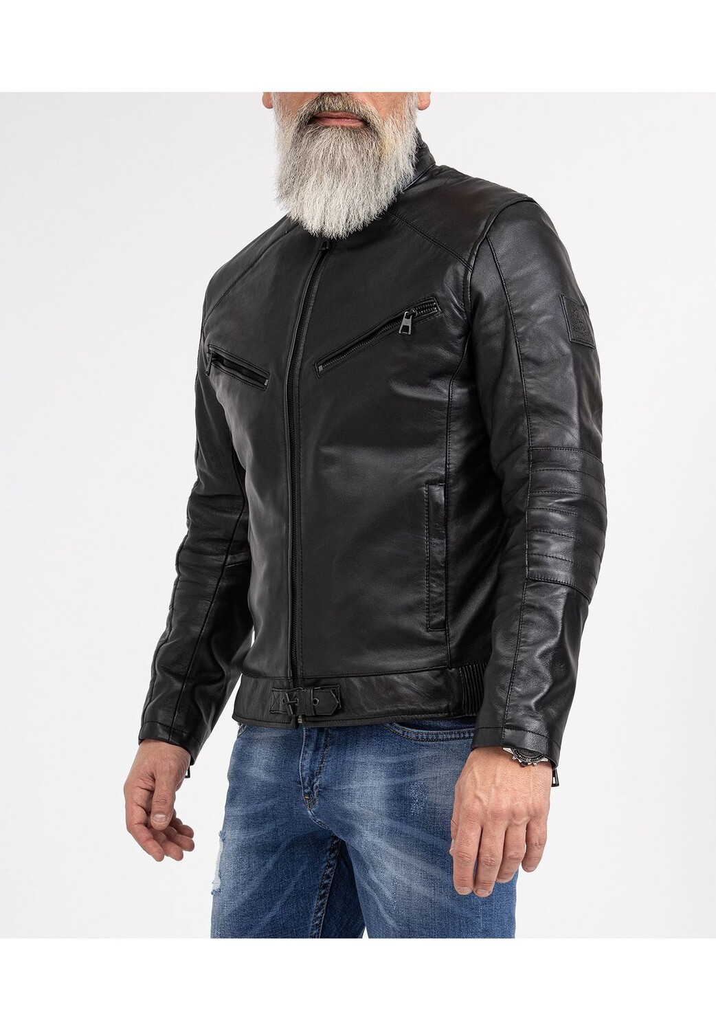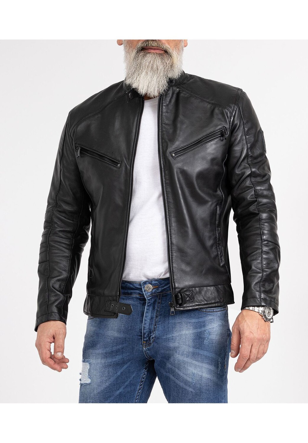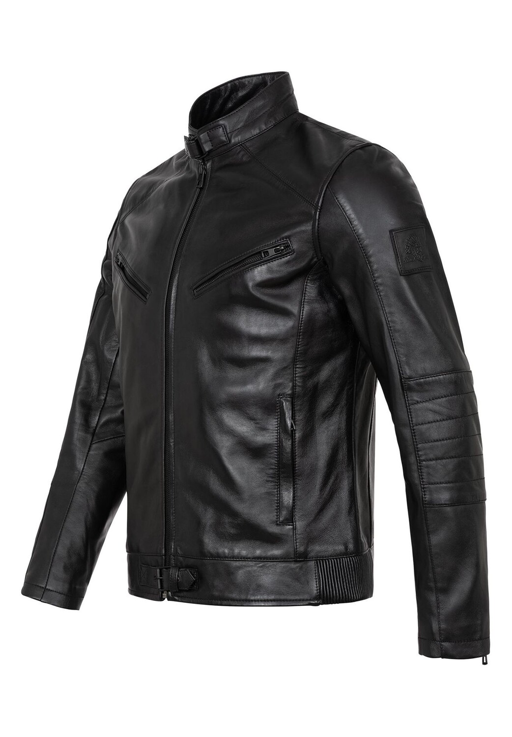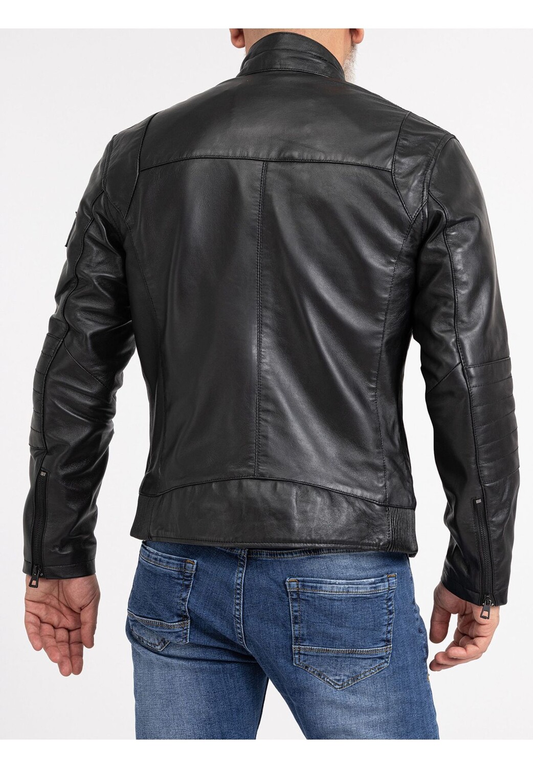 Особенности Очень красивая мужская кожаная куртка из кожи ягненка / Высочайшее качество и качественная обработка / Очень удобный материал Воротник-стойка на кнопке / Область плеч со стеганой застежкой / Два боковых кармана на молнии