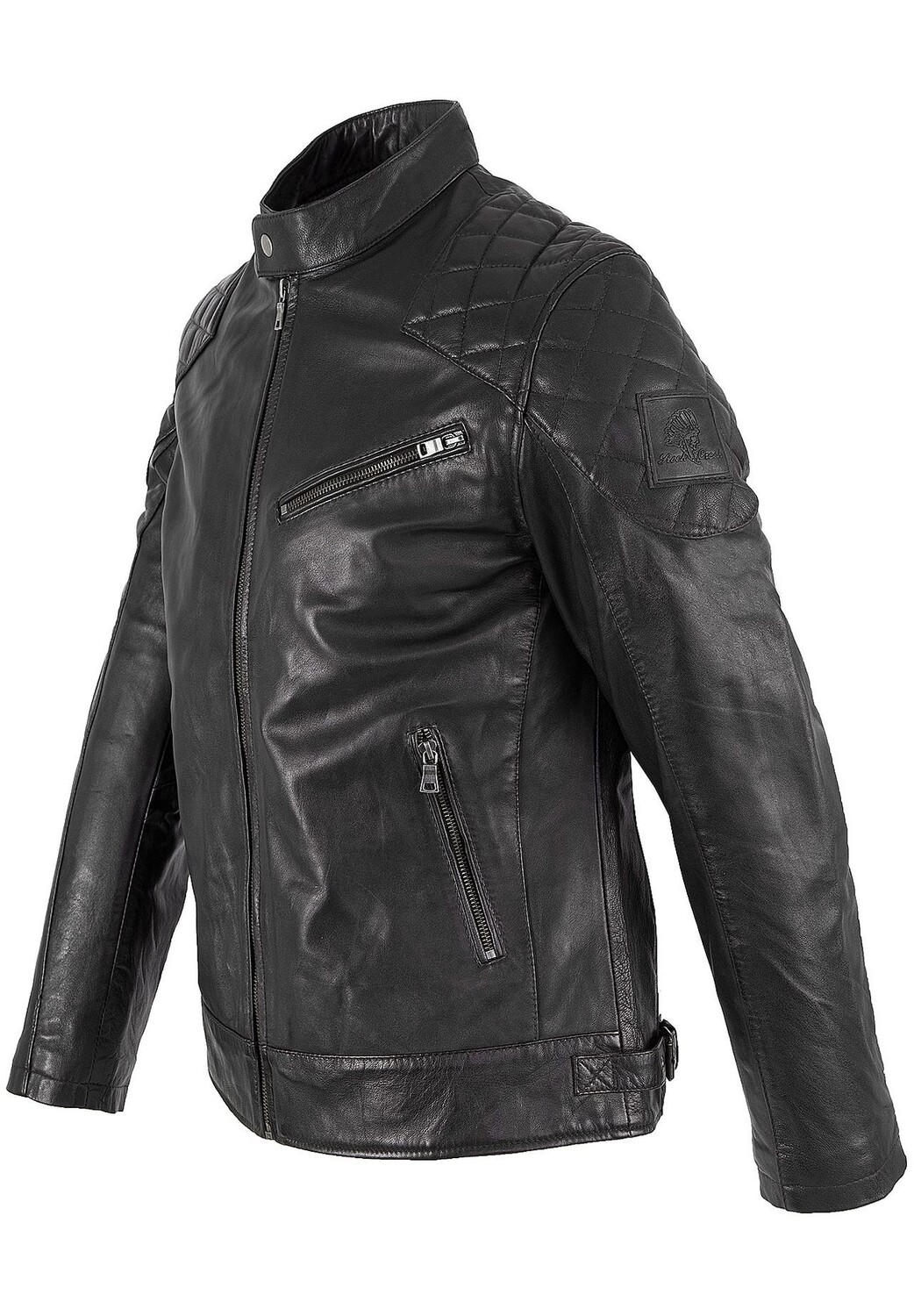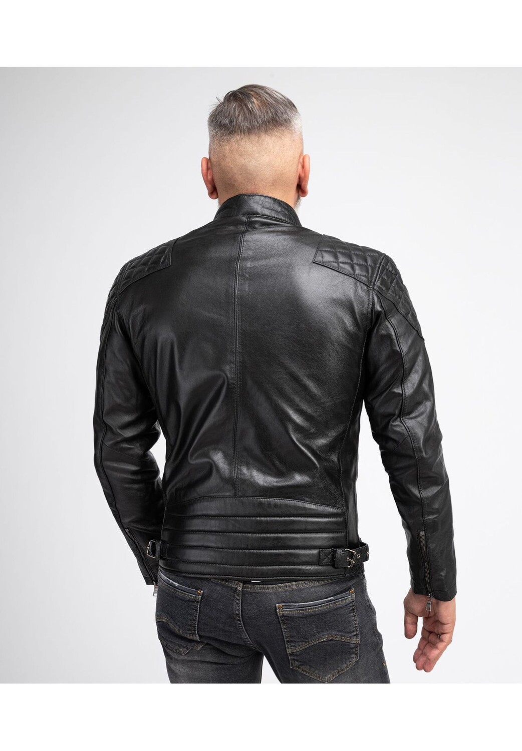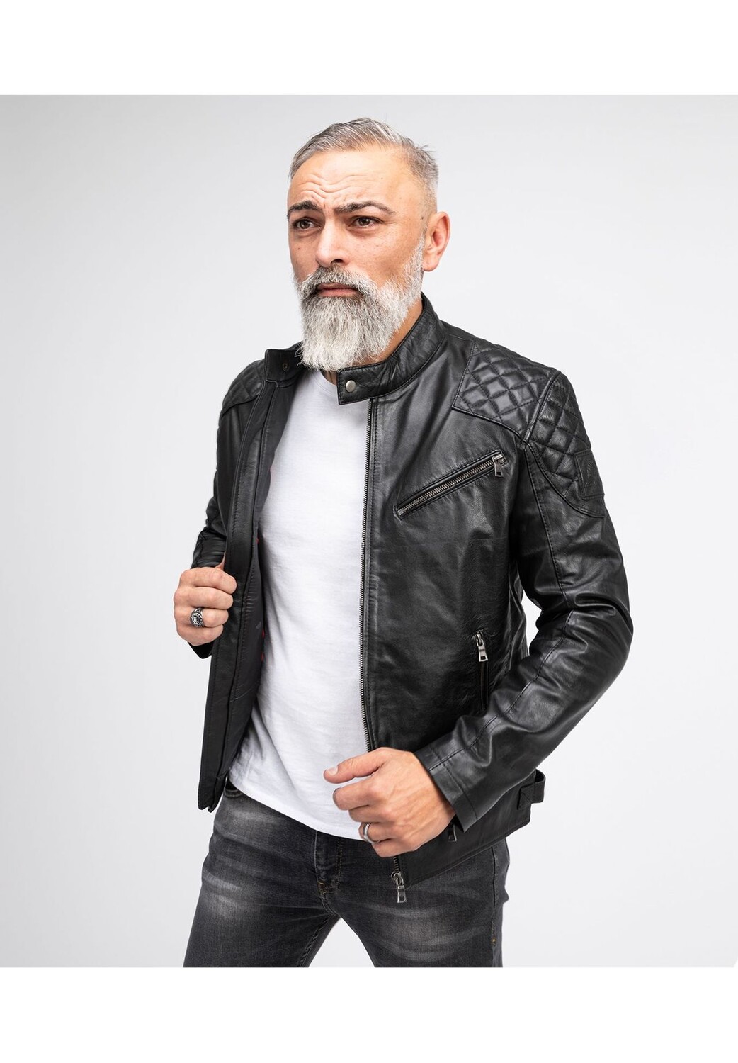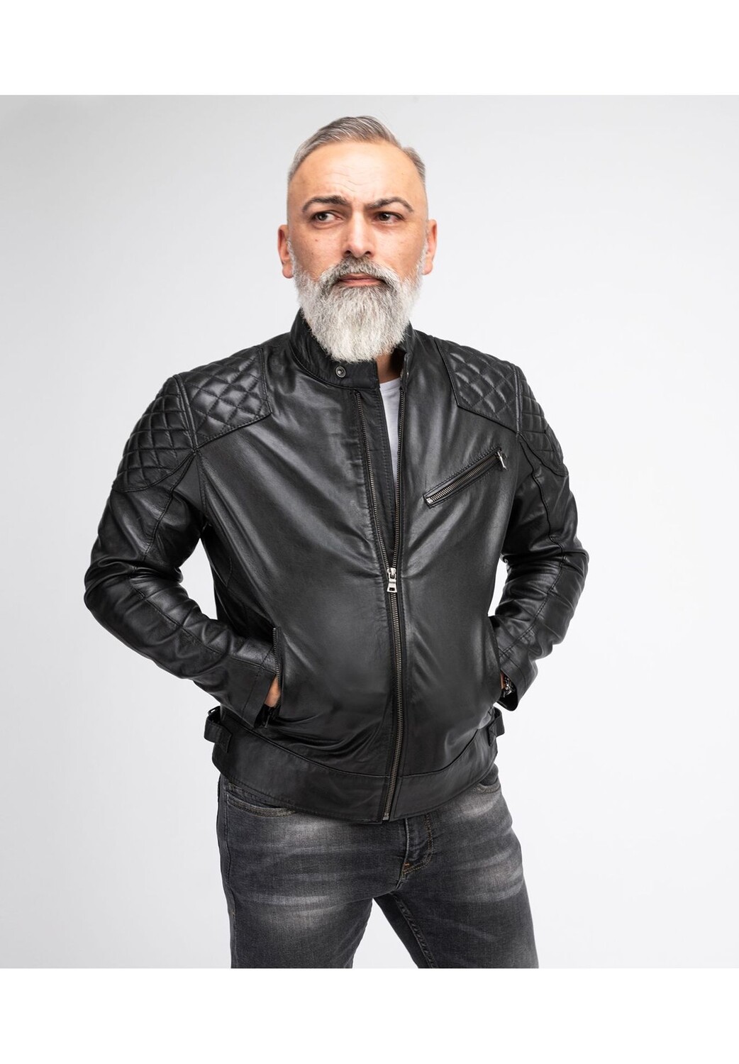 Особенности Очень красивая мужская кожаная куртка из кожи ягненка / Высочайшее качество и качественная обработка / Очень удобный материал Воротник-стойка на кнопке / Область плеч со стеганой застежкой / Два боковых кармана на молнии