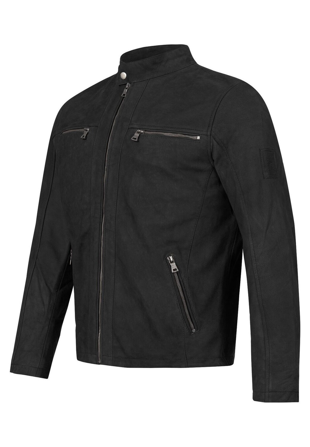 Особенности Очень красивая мужская кожаная куртка из кожи ягненка / Высочайшее качество и качественная обработка / Очень удобный материал Воротник-стойка на кнопке / Область плеч со стеганой застежкой / Два боковых кармана на молнии Два нагрудных кармана с молния / Молния во всю длину