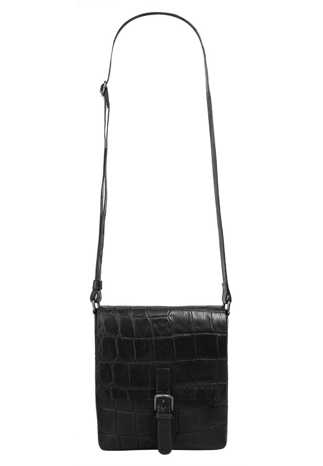 Кожаная сумка через плечо от bugatti имеет модный крокодиловый вид. Внутри небольшая сумка через плечо выглядит естественно; Основное отделение позволяет хранить кошелек, смартфон и календарь под защитой. Практичная молния и накладной карман идеально подходят для мелких предметов, таких как губная помада или жевательная резинка. Небольшой изюминкой является петелька – к ней можно прикрепить брелок для ключей и легко найти его снова. Носите новую сумку из крокодиловой кожи как на плече, так и в чемодане благодаря специальному держателю на тележке. * 1 основное отделение * 1 внутреннее отделение на молнии * 1 накладной внутренний карман * 1 кольцо для ключей внутри * 1 клапан на крышке с пряжкой * 1 регулируемый плечевой ремень (75–140 см) * декоративная пряжка * держатель на тележке