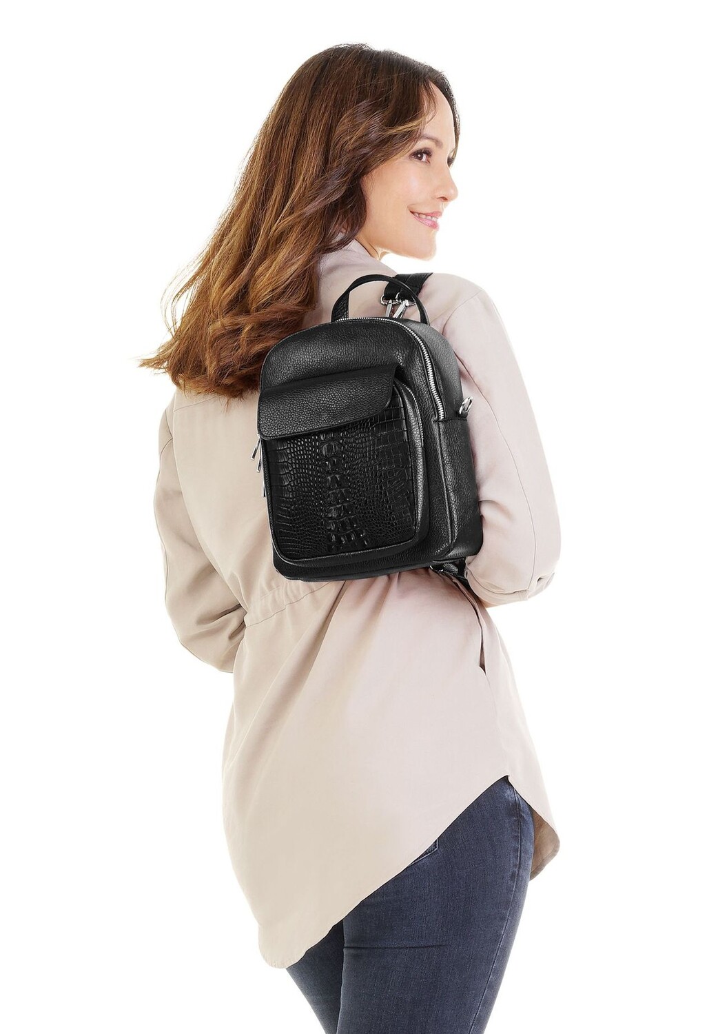Кожаный рюкзак от Cluty привлекает внимание. Простой, но модный дизайн делает его идеальным аксессуаром для любого наряда. Тиснение крокодилового узора спереди добавляет элегантный акцент. В основном отделении вы найдете отделение для смартфона и отделение на молнии для мелких предметов, таких как ключи. Съемные и регулируемые ремни и кольца-карабины обеспечивают разнообразие вариантов ношения. * Сделано в Италии * Изготовлен из 100% коровьей кожи * 1 основное отделение на молнии * 1 отделение на молнии внутри * 1 отделение для смартфона внутри (до 6 дюймов) * 1 переднее отделение с магнитной застежкой * 1 ручка * 2 съемных ремня с плавной регулировкой