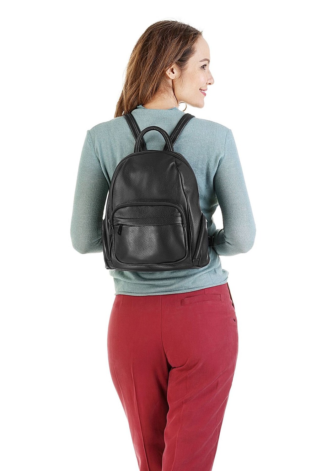 Кожаный рюкзак с харизматичным фактурным тиснением от Cluty – маленькое чудо места для хранения вещей. В 4 отделениях, застегивающихся на молнии, можно хранить все необходимые вещи, такие как ключи, кошелек и смартфон. В просторном основном отделении найдется место для всего остального. Этот кожаный городской рюкзак одновременно практичен и моден! * 100% воловья кожа * Основное отделение на двусторонней молнии * 1 накладной карман внутри * 1 дополнительный внутренний карман на молнии * 4 внешних кармана на молнии * Ручка для переноски и регулируемые лямки * Тонкое тиснение логотипа спереди