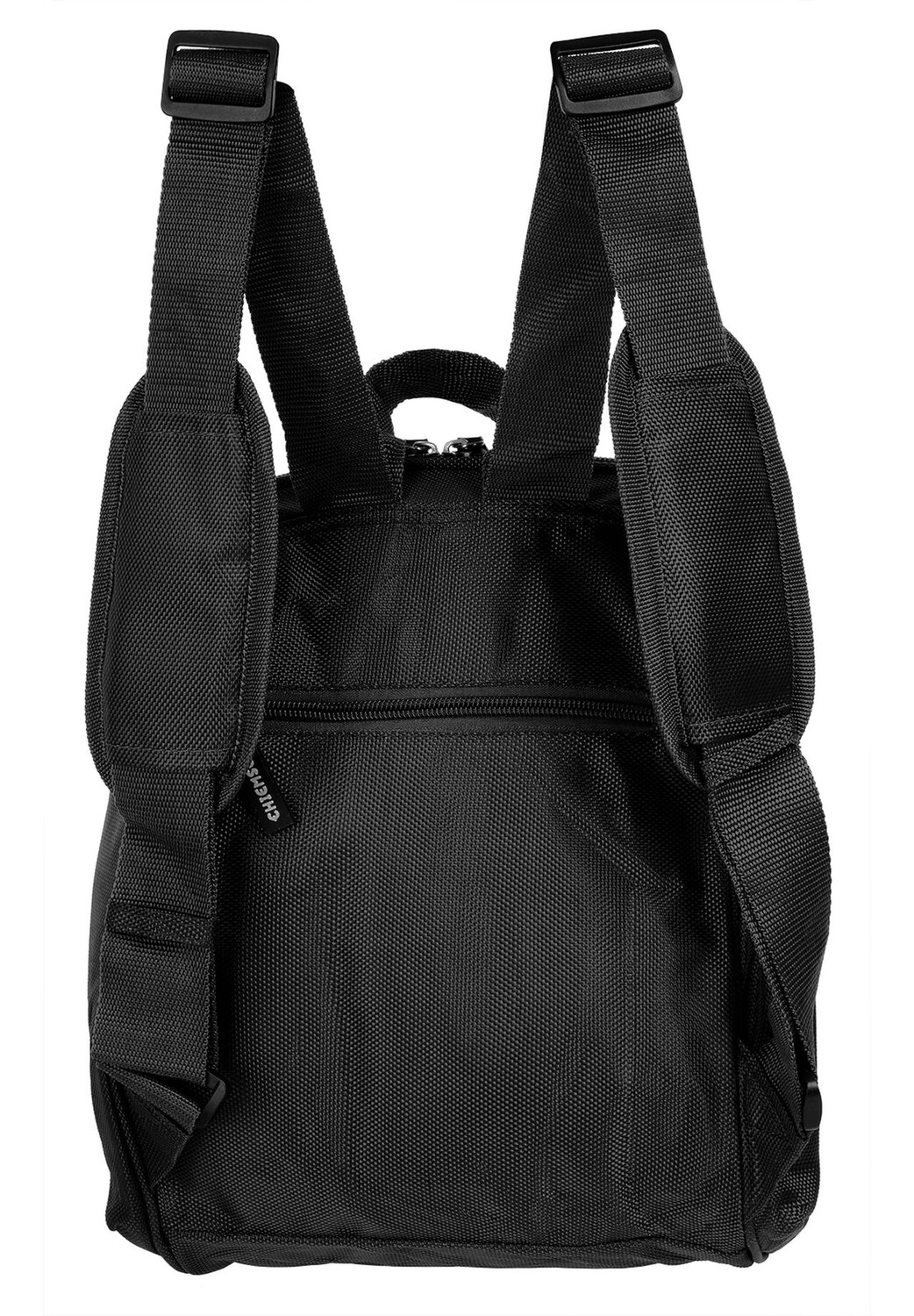 Особенности 350 г Очень легкий Высота 30 см x ширина 22 см x глубина 11 см 1 основное отделение на молнии 2 держателя для ручек внутри, 1 накладной карман внутри 1 карман на молнии спереди, 1 задний карман на молнии Плавно регулируемые лямки с подкладкой Цвет: черный