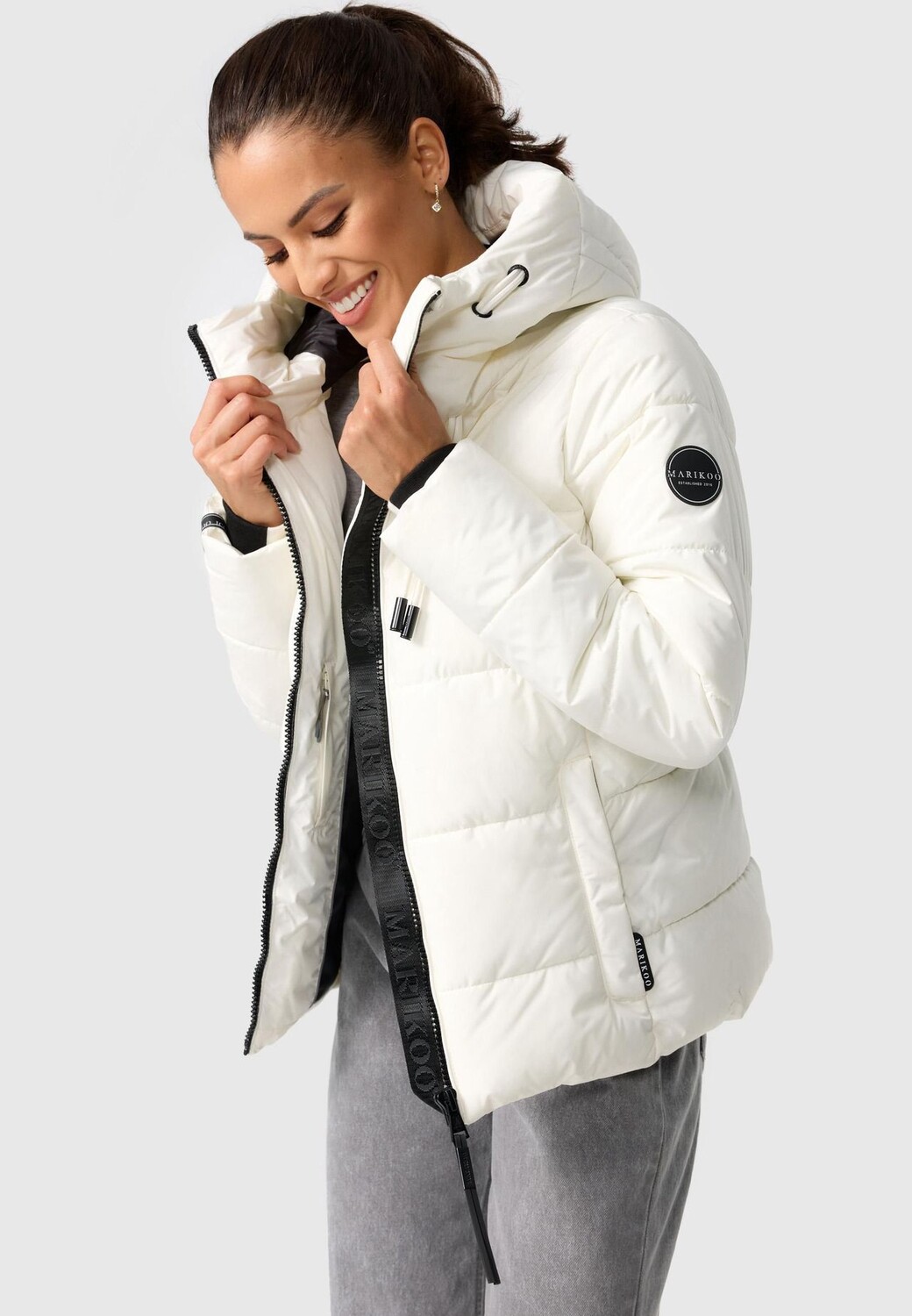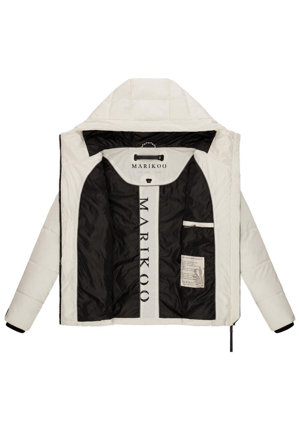 Описание товара: СМОТР: Широкая стеганая куртка-пуховик от Marikoo с модными контрастными деталями – настоящий фаворит для холодных осенних и зимних дней! МАТЕРИАЛ: Куртка на толстой подкладке из матового, мерцающего внешнего материала (водо- и ветроотталкивающего) и гладкой шелковистой внутренней подкладки. Несмотря на теплую подкладку, куртка очень легкая и, следовательно, удобная в ношении. ФОРМА: Элегантная женская стеганая куртка с фигурным, сшитым на заказ. кроя и большой длины до бедер, осенняя куртка имеет большой капюшон, который можно регулировать с помощью шнуров. ДЕТАЛИ: Высокий воротник обеспечивает идеальную защиту от ветра - лучше, чем любой шарф, наружные карманы на подкладке и ребристые манжеты. На концах рукавов вам будет тепло и приятно, а внутренние и внешние карманы обеспечивают достаточно места и места для хранения вещей.