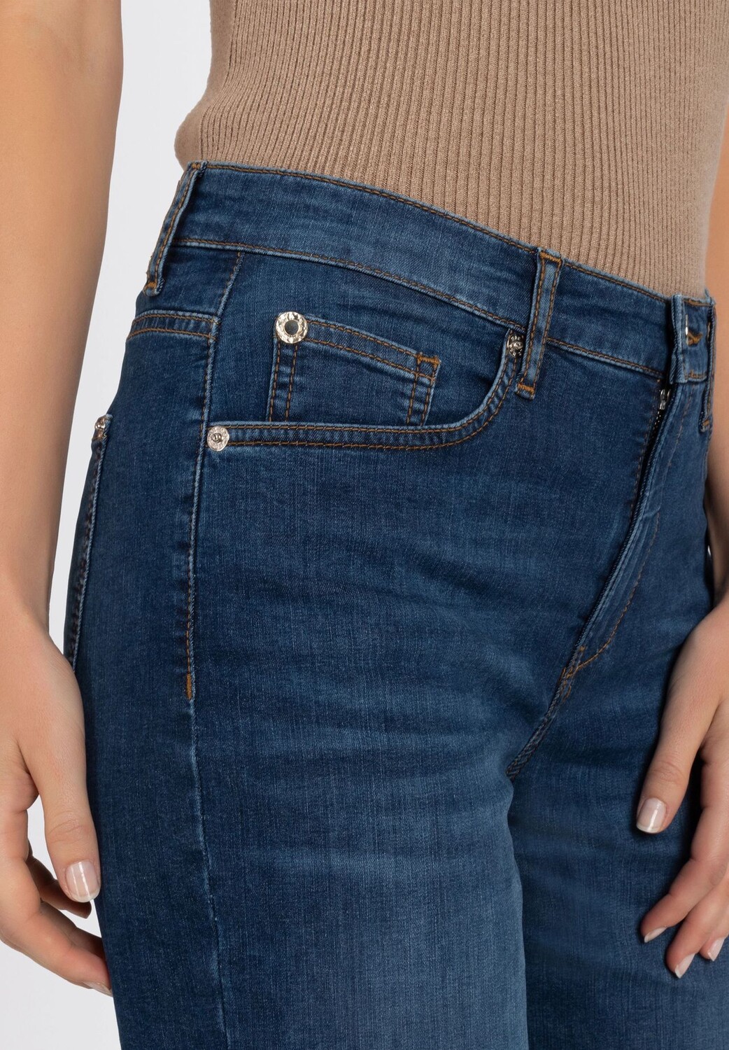 Брюки джинсовые, длина 7/8, средняя талия, стирка, женские MAC, цвет Basic Blue