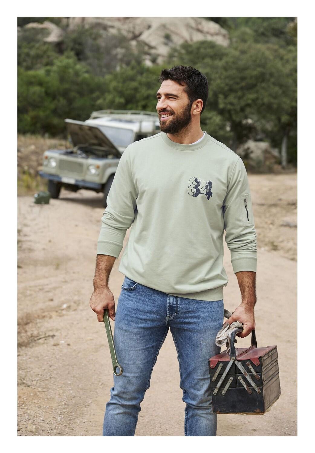 Описание товара: JAN VANDERSTORM — ваш эксперт по мужской моде больших размеров. Современный, уютный, спортивный: это лучше всего описывает свитшот ALFI от JAN VANDERSTORM. Удобная рубашка на каждый день имеет классический круглый вырез. Края рукавов, низ и горловина выполнены в рубчик и эластичны, что делает ALFI еще более удобным в ношении. Принт «84» на груди придает толстовке спортивный вид. На левом рукаве также имеется карман, который можно открыть на молнии. В целом, свитшот ALFI – это абсолютно модная вещь, в которую вы всегда будете уместно одеты в свободное время; будь то шопинг, приятная встреча или поездка за город. 60% хлопок, 40% полиэстер. Машинная стирка. КОЛЛЕКЦИЯ +FIT: Комфортный стиль из нашей коллекции +Fit.