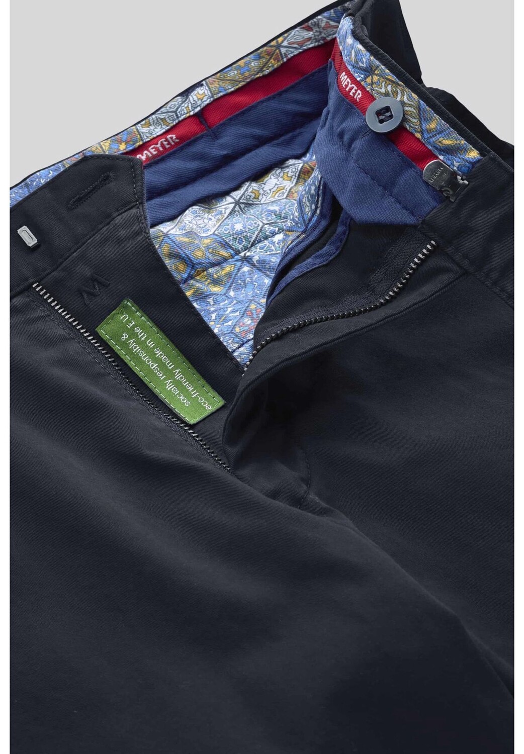 Модель Oslo от MEYER-Hosen — идеальный компаньон для тех, кто много путешествует. Брюки для вождения и путешествий имеют специальный эластичный пояс, который прогибается до 8 см и не сдавливает даже при длительном сидении. Современная плоская передняя часть имеет прорезные карманы, два задних кармана на пуговицах и типичный для MEYER потайной безопасный карман, который особенно удобен во время путешествий. Свободные брюки-чинос изготавливаются из хлопка, продаваемого на справедливой основе и сертифицированного независимой печатью Fairtrade.