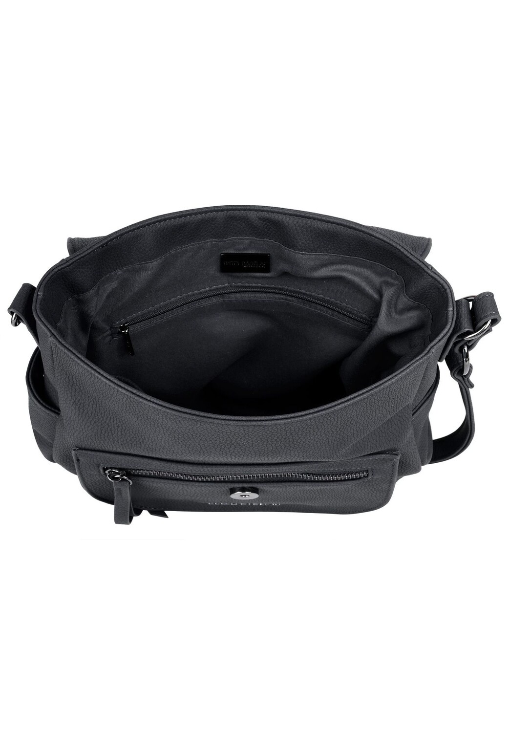Модно, просто и практично: это сумка через плечо от Betty Barclay! Под очаровательной крышкой вы найдете основное отделение идеального размера для повседневной жизни. Смартфон, ключи, кошелек и многое другое найдут свое место здесь, рядом с вами. Для первых предусмотрен даже отдельный карман, чтобы вы могли держать свое устройство в безопасности и всегда под рукой. Дополнительные варианты вставки можно найти на внешней стороне сумки. * 1 клапан на магнитной застежке * 1 основное отделение * 1 накладной внутренний карман * 1 внутренний карман на молнии * 1 внутреннее отделение для смартфона (до 5,5 дюймов) * 1 переднее отделение на молнии * 1 заднее отделение на молнии * 2 боковых кармана * 1 плавно регулируемый плечевой ремень (65–120 см) * тонкий логотип спереди