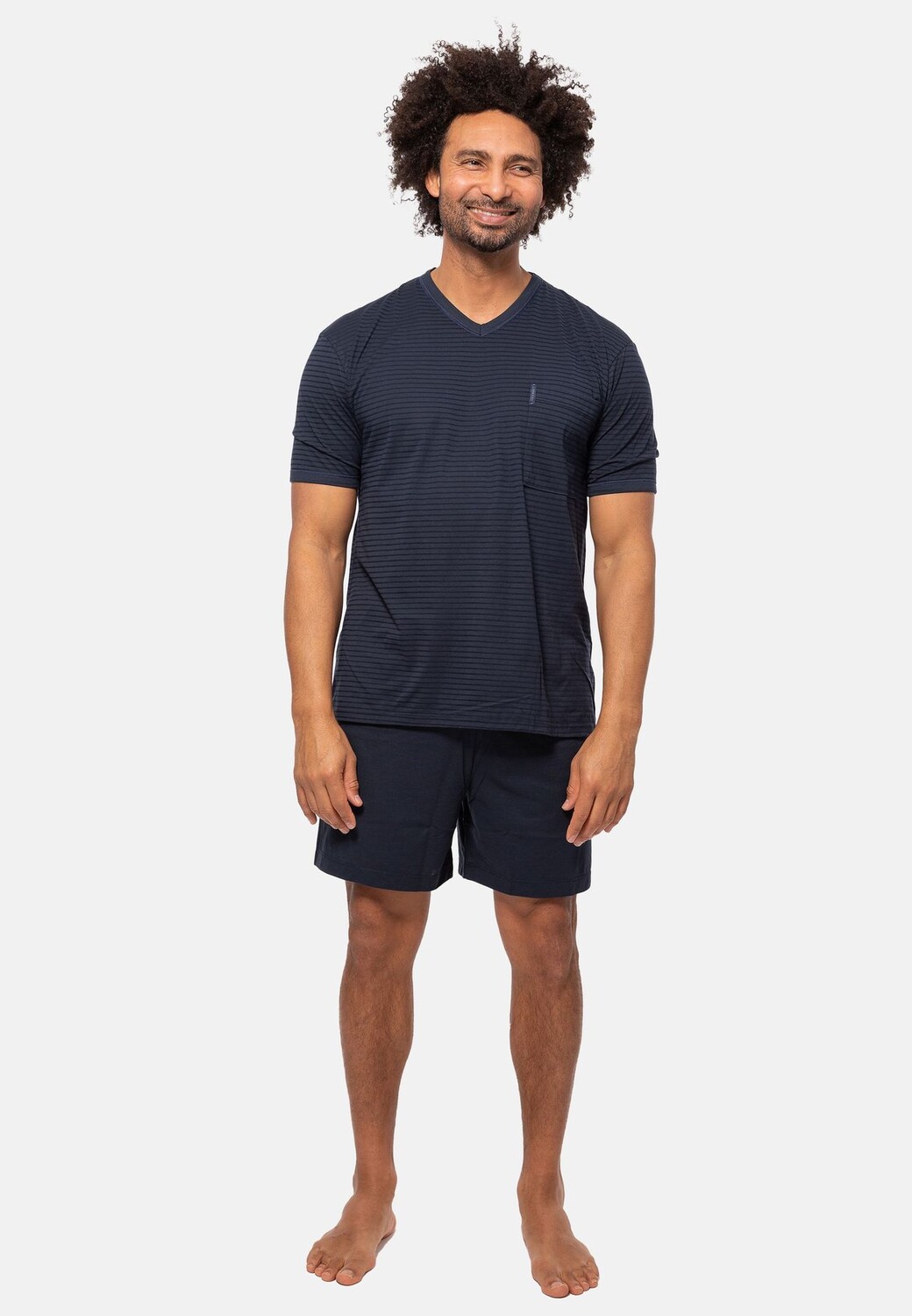Короткие мужские пижамы-двойки из серии Extra Light Cotton изготовлены из 100% органического хлопка, создают ощущение естественности и приглашают вас к спокойному сну. Короткие рукава, воздушный крой и сверхлегкий материал обеспечивают дополнительный комфорт в этой пижаме, особенно в теплое время года.