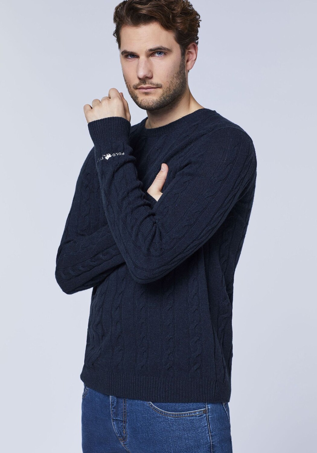 Особенности Мужской свитер POLO SYLT с вязаным узором Мягкая смесь шерсти Классный крой Заниженный круглый вырез Широкие манжеты в рубчик Материал: Трикотаж Стиль: Повседневный Таблица размеров strong>: изделие нормальное Выкрой: прямой Вырез: круглый вырез Длина рукава: Длинный рукав Спорт: Фитнес