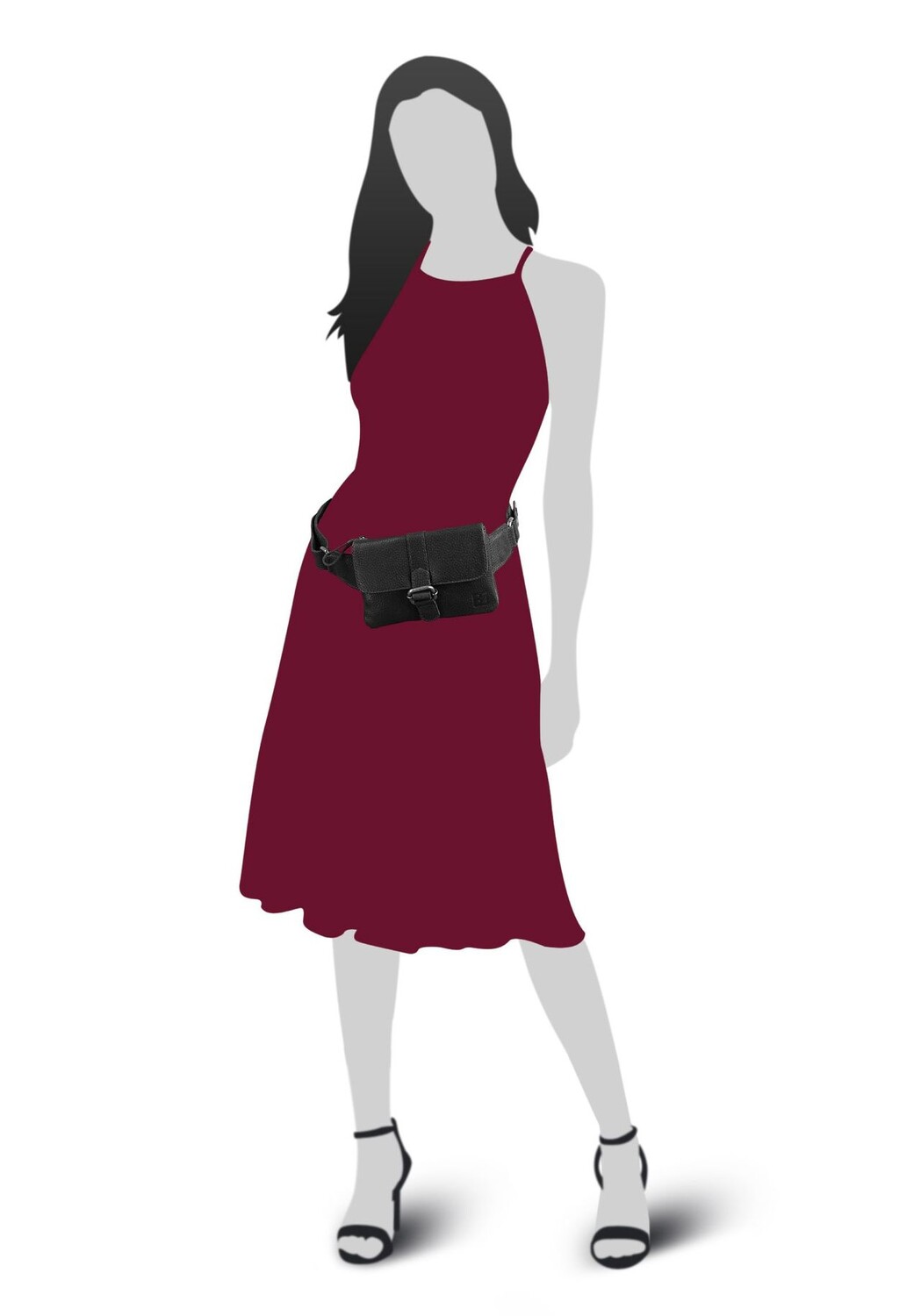 Очаровательная кожаная поясная сумка от Bodenschatz вас порадует. Декоративная пряжка спереди придает сумке винтажный вид – перед ней просто невозможно устоять! Основное отделение, большое переднее отделение, а также запираемое заднее отделение позволяют держать кошелек, смартфон и ключи в безопасности и близко к телу. Поясную сумку можно носить в классическом стиле на бедрах или в повседневной одежде через верхнюю часть тела – это возможно благодаря регулируемому ремню. * изготовлен из 100% коровьей кожи * 1 основное отделение на молнии * 1 переднее отделение на магнитной застежке * 1 заднее отделение на молнии * изящное тиснение логотипа спереди * регулируемый ремень (75–115 см)