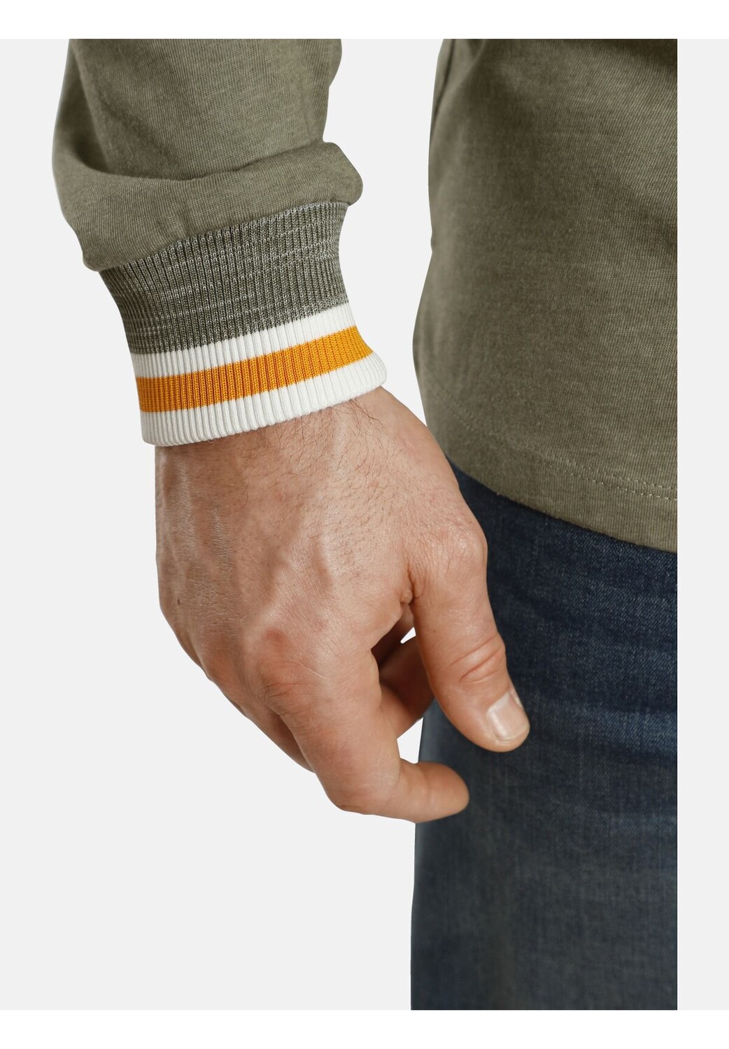 Особенности Стильная цветовая блокировка Гладить при низкой температуре Оливковый меланж Стирать с похожими цветами, Стирать наизнанку, Гладить наизнанку Толстовка EARL GARWY с саржевым воротником «Кент» Комфортная посадка — прямой и удобный крой Хлопок с колор-блоками Нашивка с мотивом рыболовного клуба