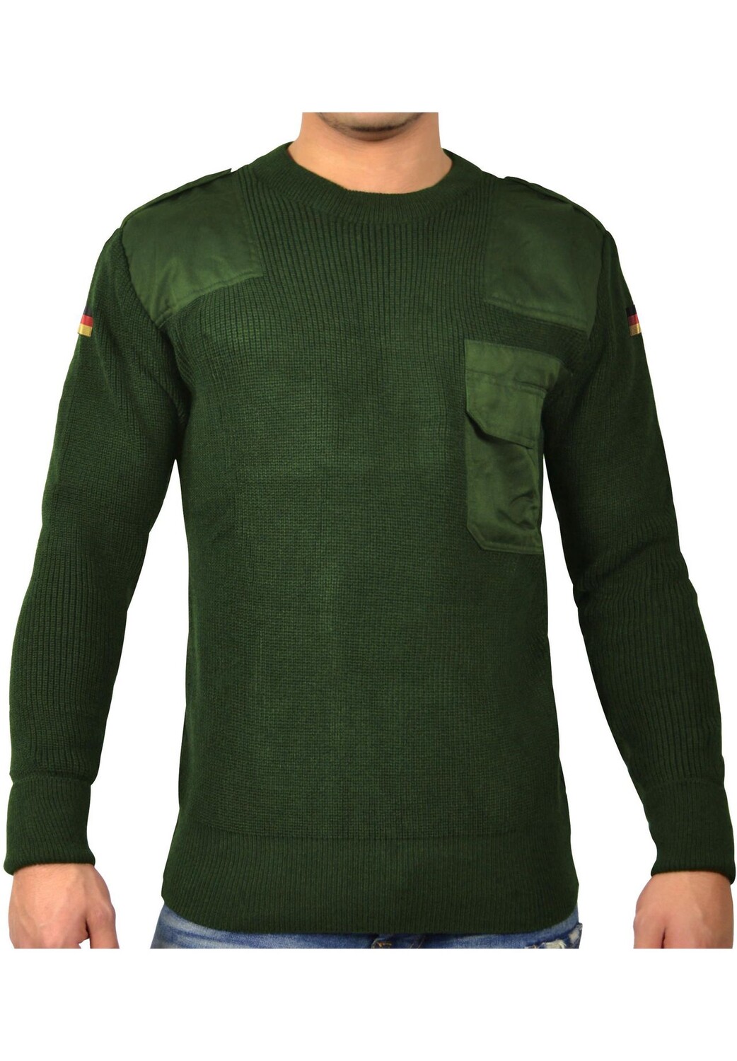 Классический, проверенный свитер Бундесвера был изготовлен в соответствии с оригинальными свитерами качества Бундесвера согласно TL. Идеально подходит для холодного времени года. Вязаный свитер уютный и теплый, прочный и обеспечивает комфортный климат при ношении. Полиакрил согревает и изолирует в холодную погоду, впитывает влагу в жару и сохраняет кожу сухой. Свитер имеет усиленные локти и плечи, отделку плеч с хлястиками и нагрудный карман со встроенным держателем для ручек. Более длинный разрез защищает область почек. Вязаные манжеты на манжетах и воротнике сохраняют форму свитера и защищают от холода. На обоих плечах шерстяного свитера изображен значок национальности. Свитер идеально подходит для использования на открытом воздухе как сверху, так и снизу. • Мужской