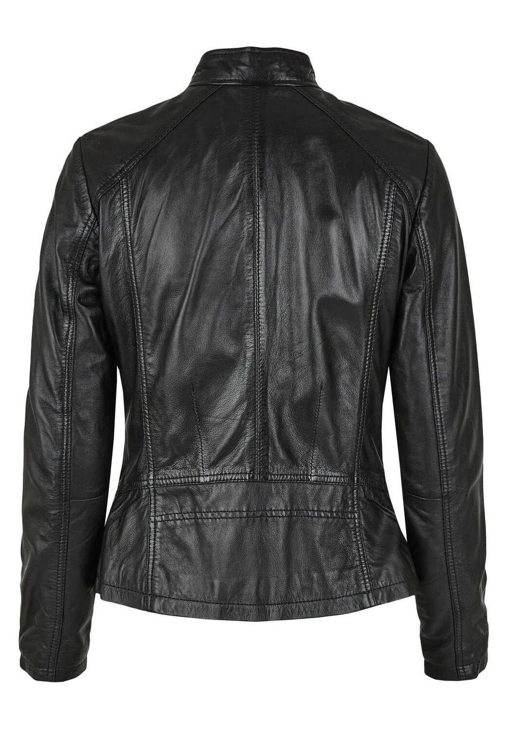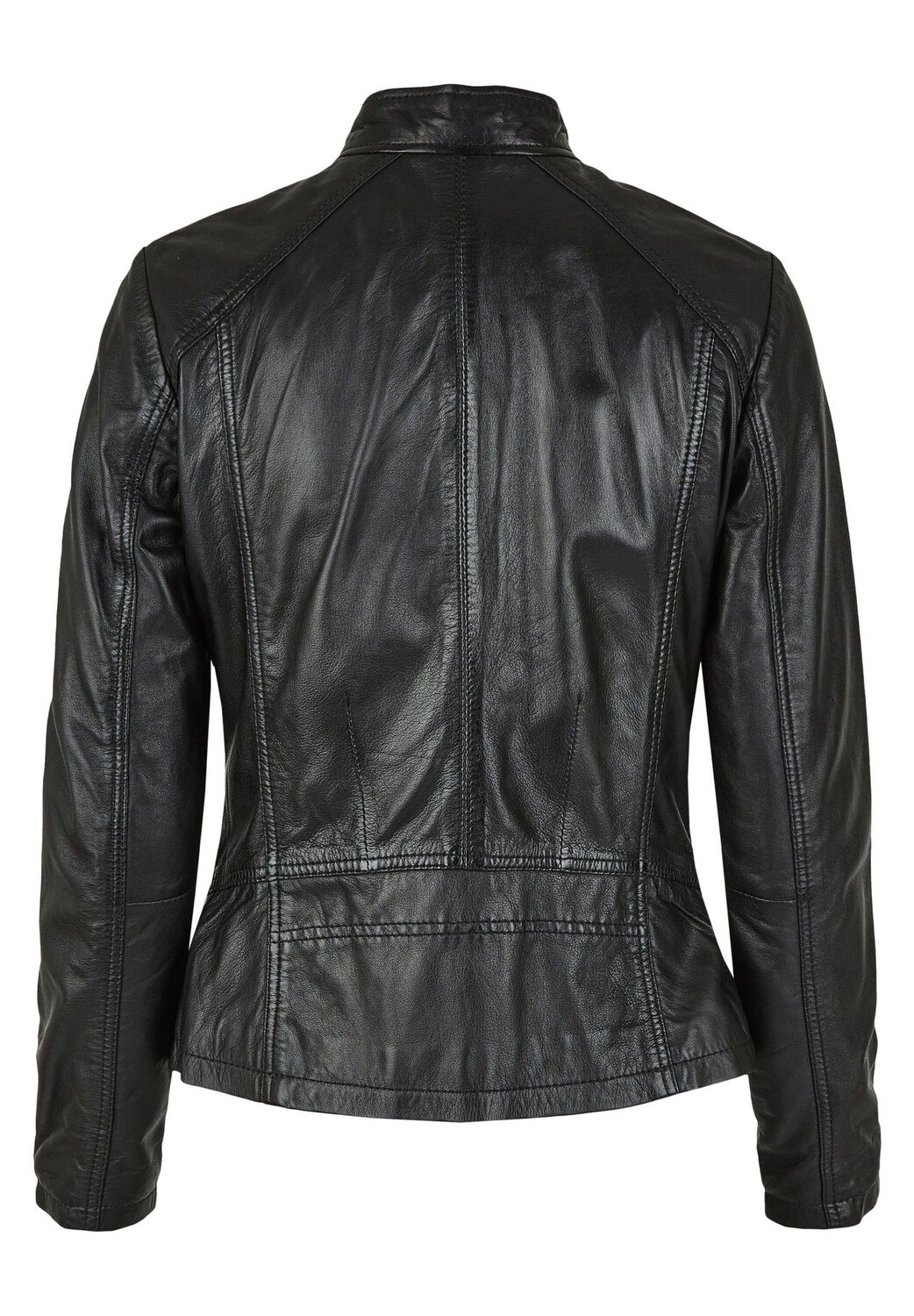 Подарите себе городской шик во всей его красе – с этой современной женской кожаной курткой от 7eleven. Кожа наппа растительного дубления в сочетании с повседневным кроем обеспечивает исключительный комфорт при ношении. Классический воротник-стойка с декоративной пряжкой привлекает внимание. Практичные карманы на молнии удачно дополняют дизайн этой кожаной куртки.