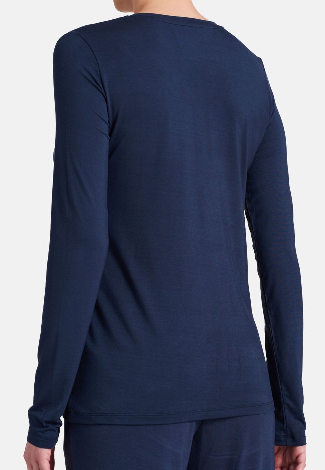 Эта базовая женская рубашка с длинными рукавами просто незаменима! Благодаря приятному крою оно удивительно легко ласкает тело. V-образный вырез завершает повседневный образ. Секрет хорошего самочувствия – эластичный одинарный трикотаж из натурального модала. Сверхмягкий материал приятен к коже, дышит и за ним легко ухаживать. Просто скомбинируйте его с подходящими брюками из серии Mix+Relax – и вы получите непринужденный и качественный стиль!