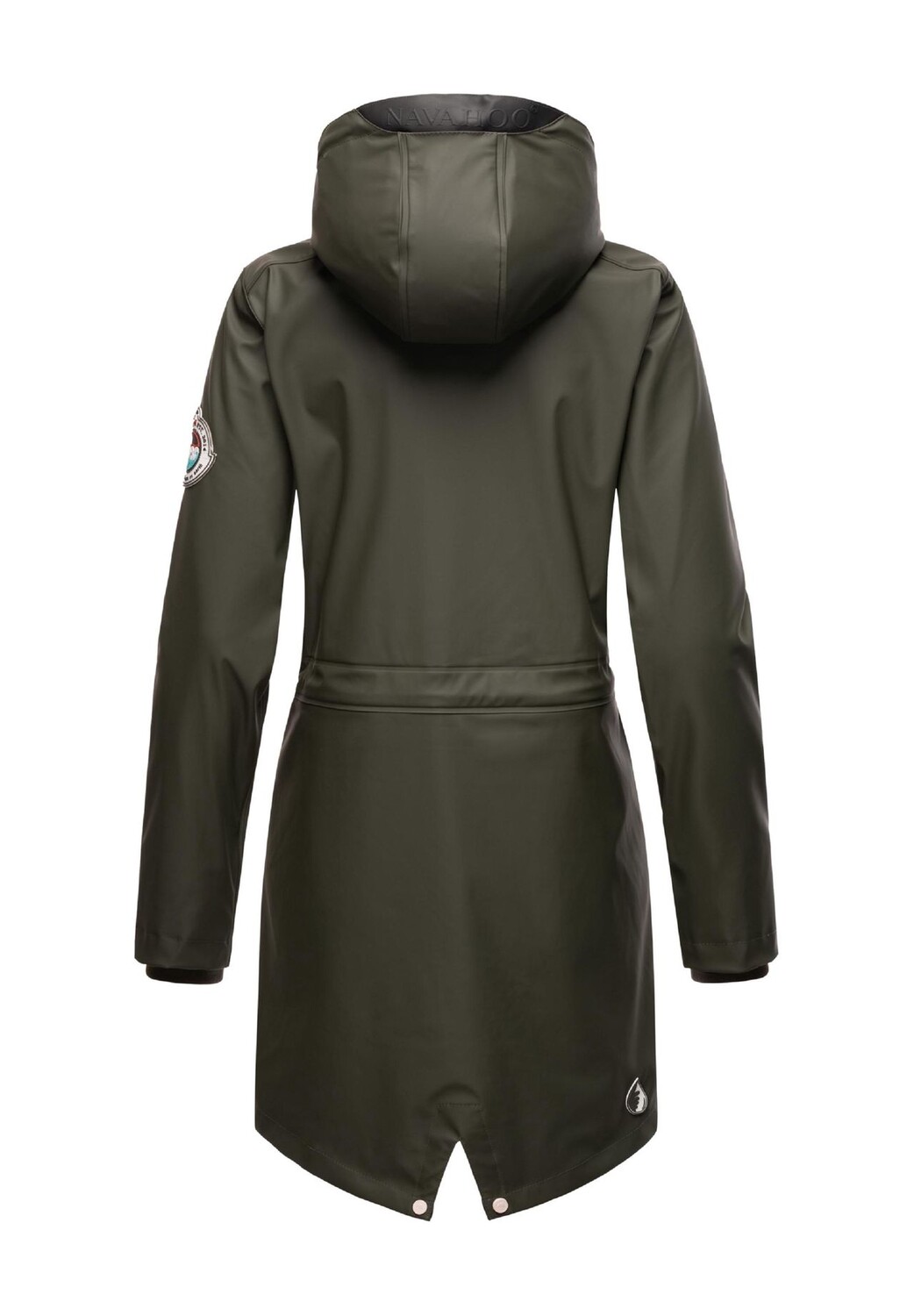 Описание товара: ВИД: Стильное пальто для отдыха на открытом воздухе с большим капюшоном, прорезиненным внешним материалом и множеством стильных деталей от Navahoo. МАТЕРИАЛ: Куртка с эластичным, гладким и водонепроницаемым внешним материалом (прорезиненным), цветочным узором и гладкой внутренней частью. подкладка верхней куртки доходит до капюшона и является визуальным акцентом. ПОДХОД: Куртка с капюшоном большой длины примерно до середины бедра (крой «ласточкин хвост» с разрезом; сзади длиннее, чем спереди), благодаря индивидуальному размеру. регулируемый шнурок на талии, функциональная парка становится настоящей фигурой. ДЕТАЛИ: длинный плащ водонепроницаем и ветрозащитен благодаря сварным швам, потайные боковые карманы с водонепроницаемыми молниями особенно удобны, многочисленные внутренние карманы обеспечивают много места для хранения.