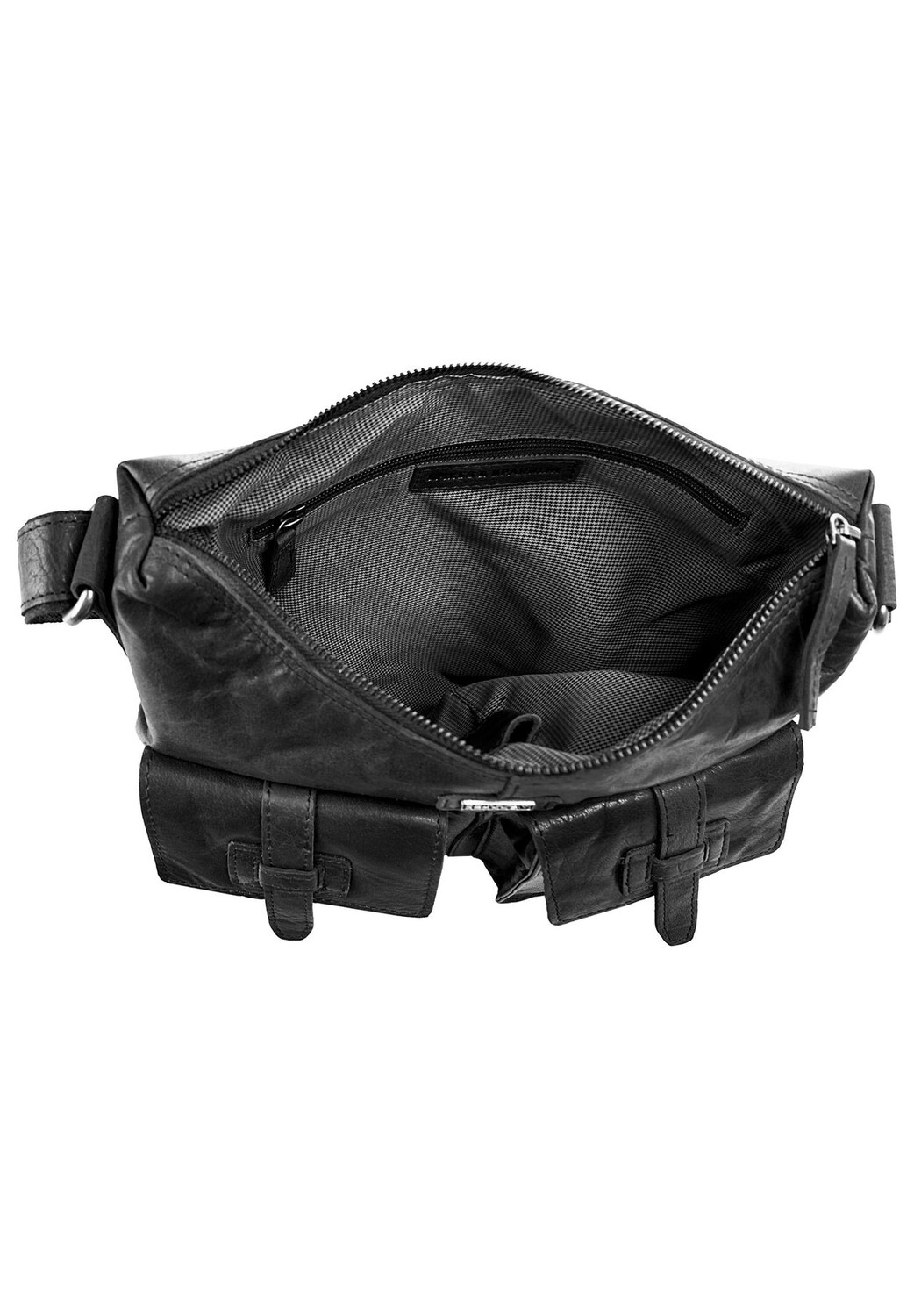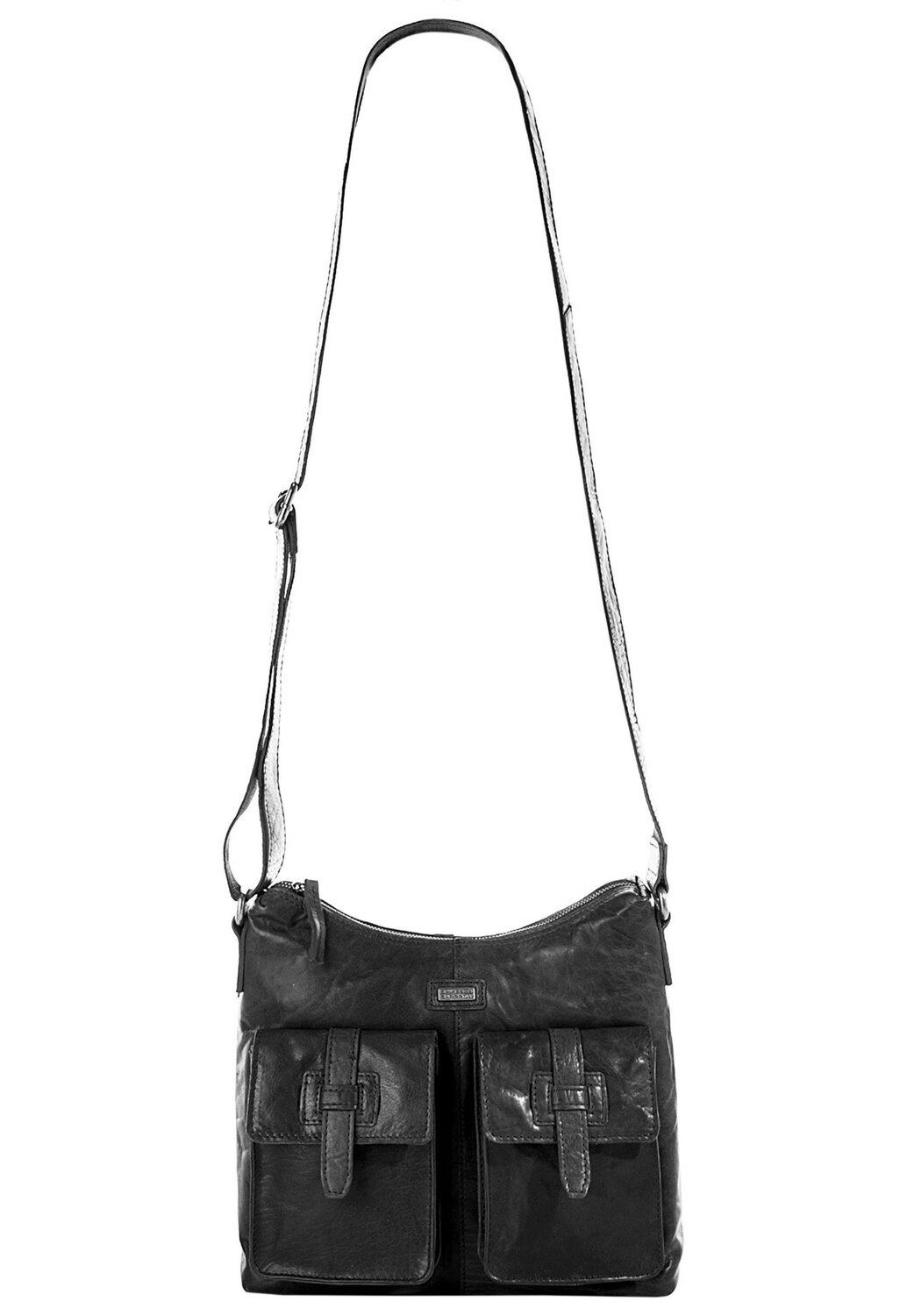 Практичная кожаная сумка через плечо в модном винтажном стиле. Два передних кармана с прикрепленными язычками создают повседневный образ. Две петли для ручек, два отделения для смартфонов и внутренний карман на молнии обеспечивают порядок внутри и дополнительную безопасность ваших ценностей. Благодаря плавно регулируемому ремню через плечо эта шикарная кожаная сумка через плечо станет привлекательным спутником практически в любом случае! * 100% натуральная кожа * 1 основное отделение на молнии * 1 внутренний карман на молнии * 2 отделения для смартфона внутри * 2 петли для ручек внутри * 2 передних кармана на магнитной застежке * 1 задний карман на молнии * плавно регулируемый текстурированный ремень на плечо * модный винтажный вид