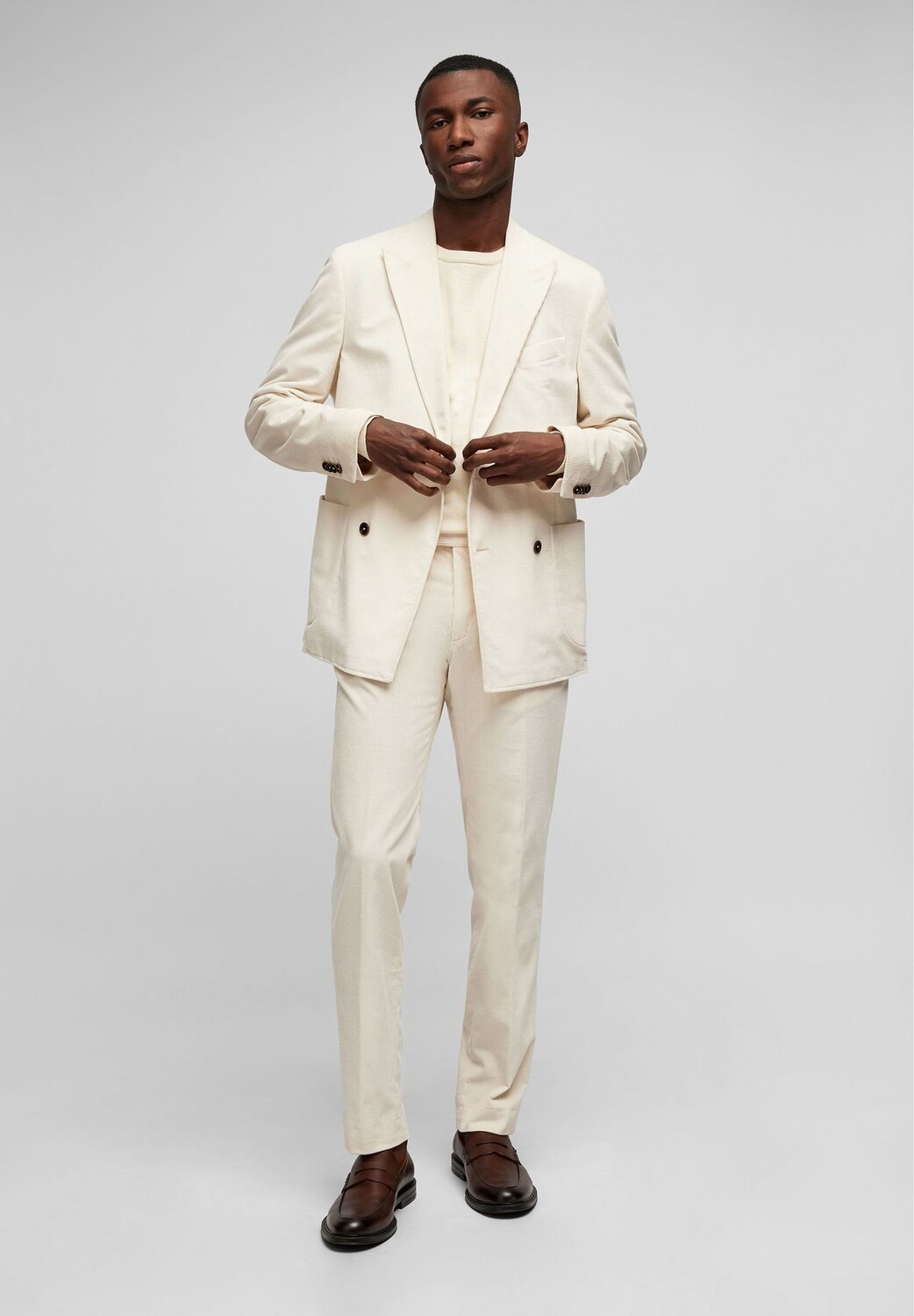 Вельветовые брюки HECHTER PARIS кремового цвета в удобном крое Comfort Leisure FIT изготовлены из смеси хлопка и эластичного материала с классическим поясом и шлевками для ремня. Боковые карманы и окантовочные карманы сзади завершают образ. Шикарный универсальный вариант для вельветовой куртки.