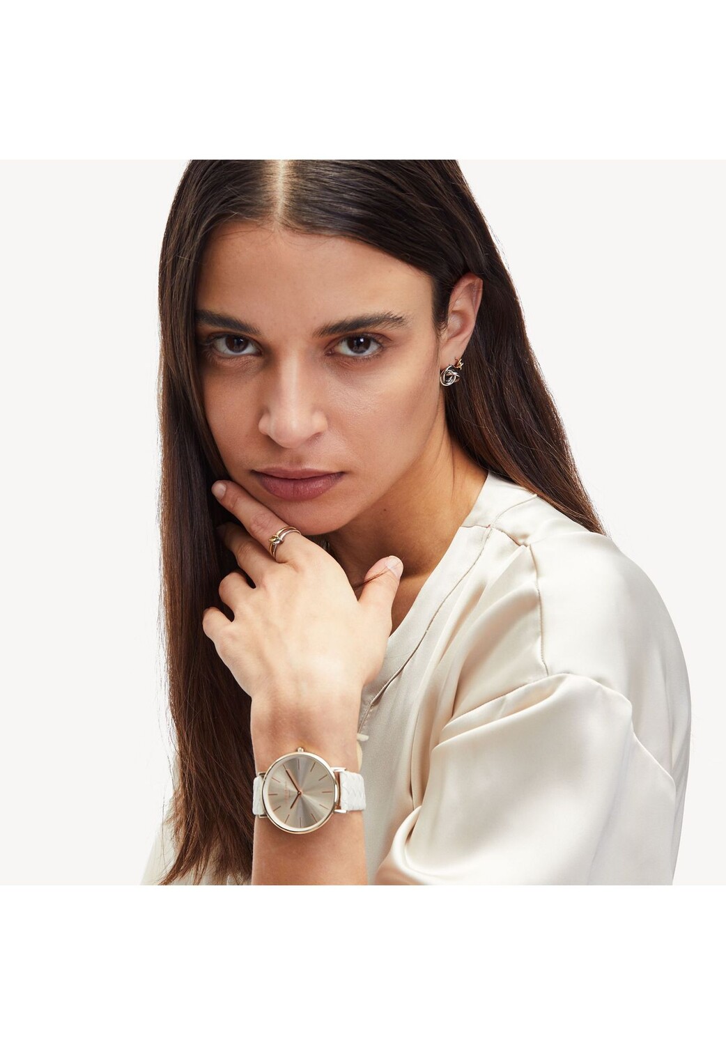 Особенные характеристики Стильные часы Liebeskind Berlin с плетеным кожаным ремешком и блестящим циферблатом Корпус из нержавеющей стали Ø 38 мм, устойчивое к царапинам минеральное стекло, водонепроницаемость до 5 бар/атм Высококачественный кожаный ремешок с застежкой Легко читаемый циферблат Упакован в оригинальную подарочную упаковку LIEBESKIND BERLIN коробка Цвет: бежевый Цвет дисплея: бежевый Целевая группа: женщины Цветные часы
