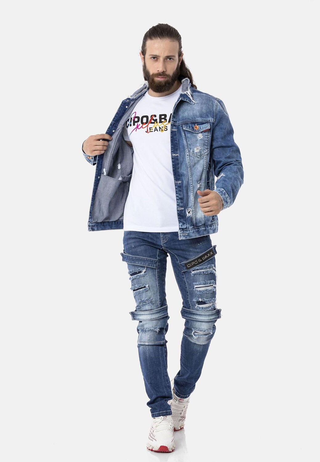Джинсовая куртка с классными разрушенными элементами CIPO & BAXX, синий