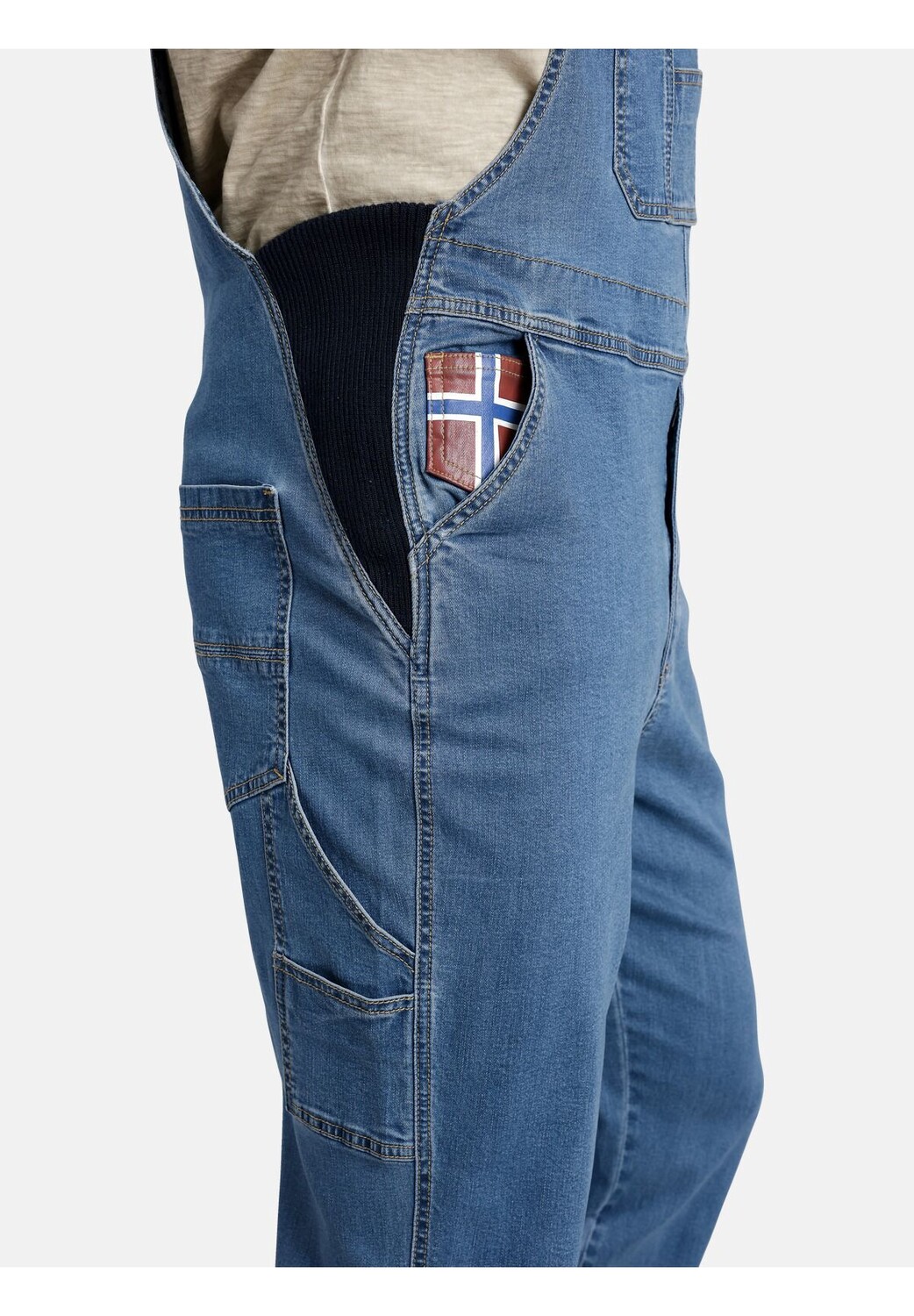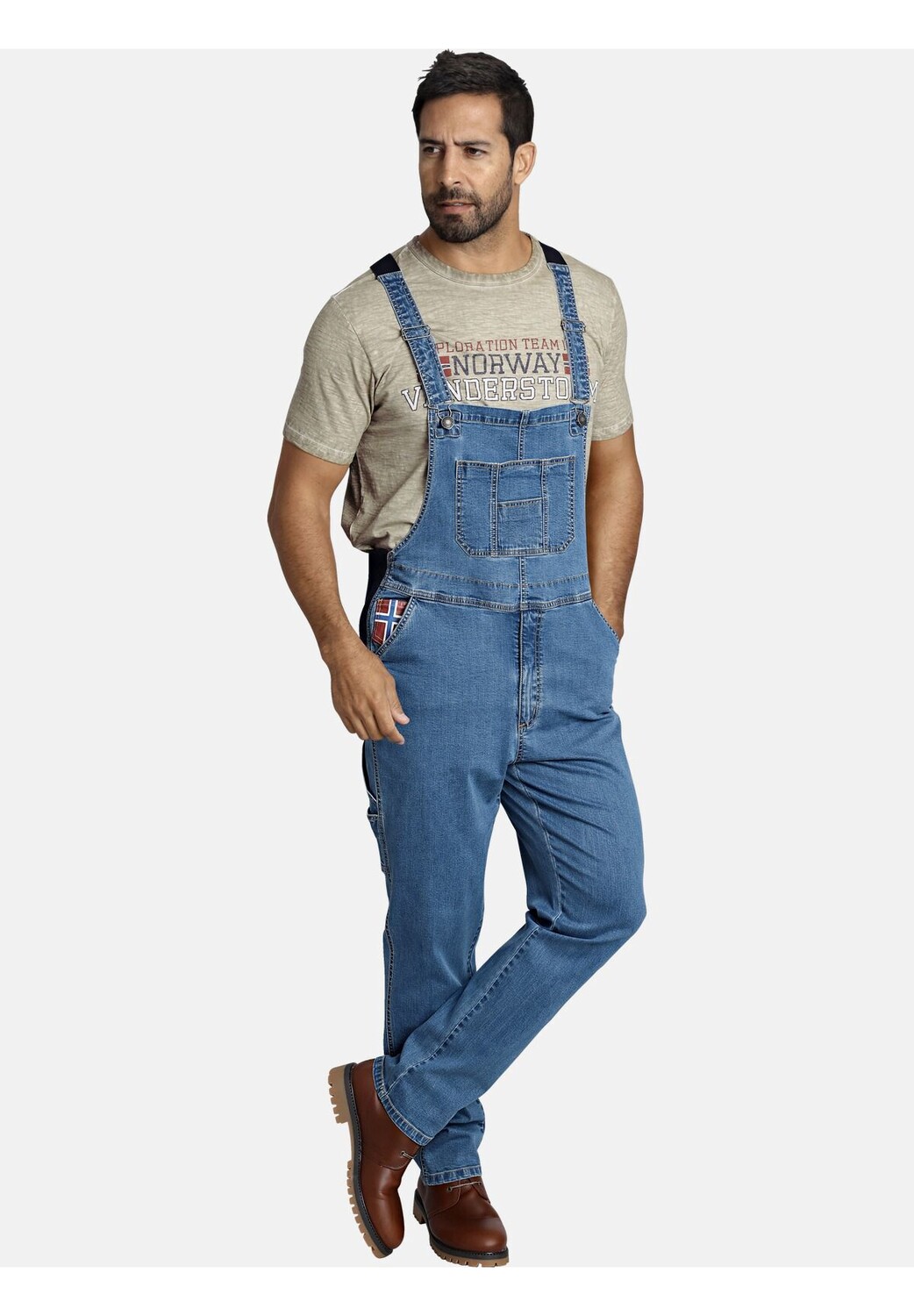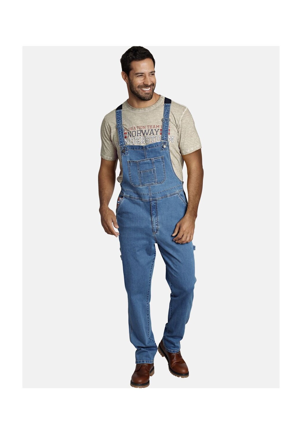 ЯН ВАНДЕРСТОРМ — ваш эксперт по мужской моде больших размеров. Да, многие мужчины предпочитают комбинезон! Именно поэтому по многочисленным просьбам появились комбинезоны KEARON из джинсовой ткани. Разделенный нагрудный карман, карман для линейки и петля для молотка выглядят особенно прочно. Боковые карманы и накладные карманы сзади обеспечивают еще больше места для хранения инструментов и посуды. Эластичные вставки на лямках и поясе делают его особенно удобным в ношении. А что торчит из правого кармана? Флаг Норвегии. Да, это снова типичный ЯН ВАНДЕРСТОРМ. Что сочетается с комбинезонами? Футболка, свитшот – и обязательно ты тоже! 98% хлопок, 2% эластан. Эластичные вставки 95% полиэстер, 5% эластан. Машинная стирка.